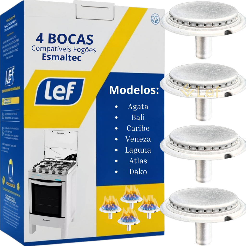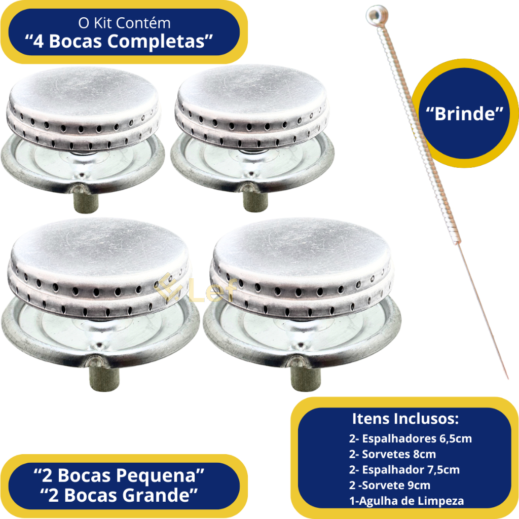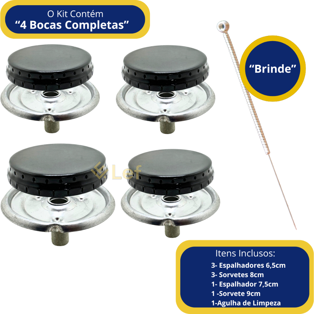 Kit Com 4 Bocas Para Fogão Esmaltec Agata Bali Caribe Veneza