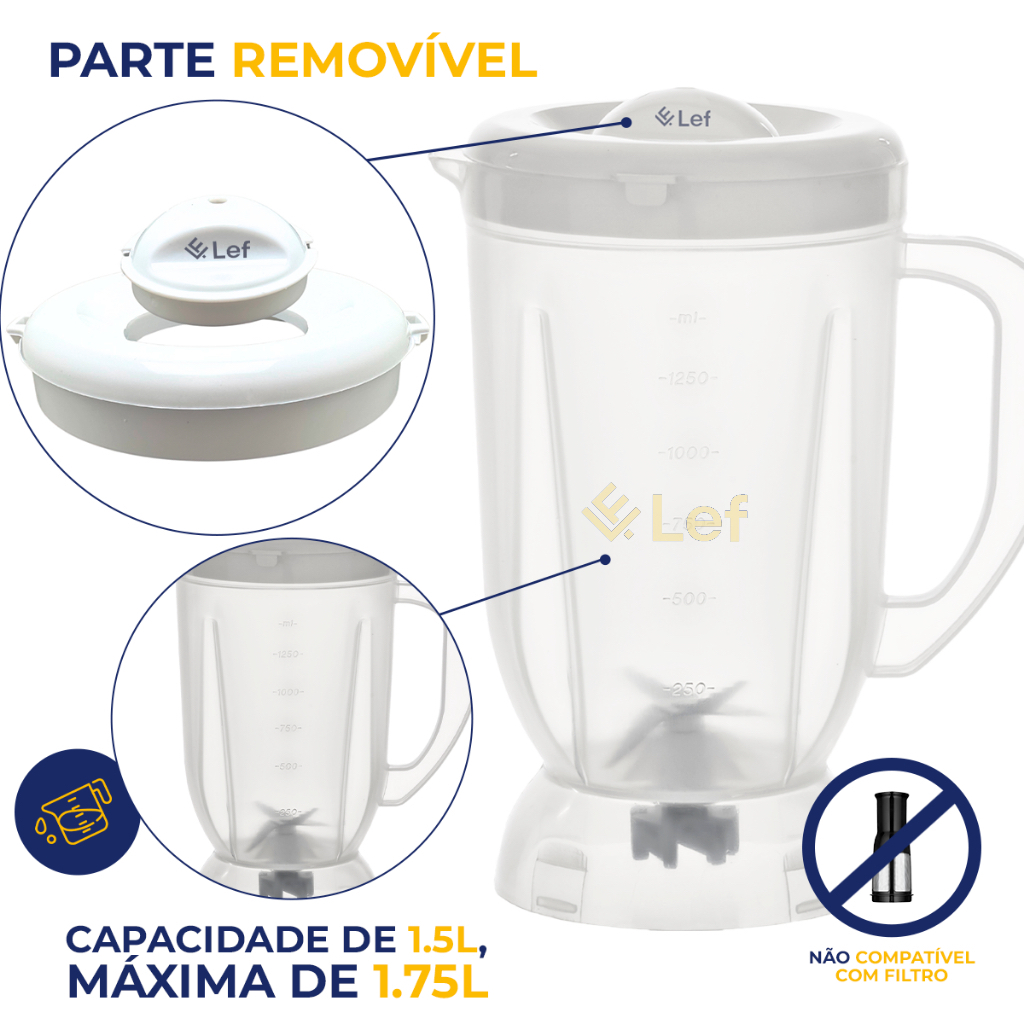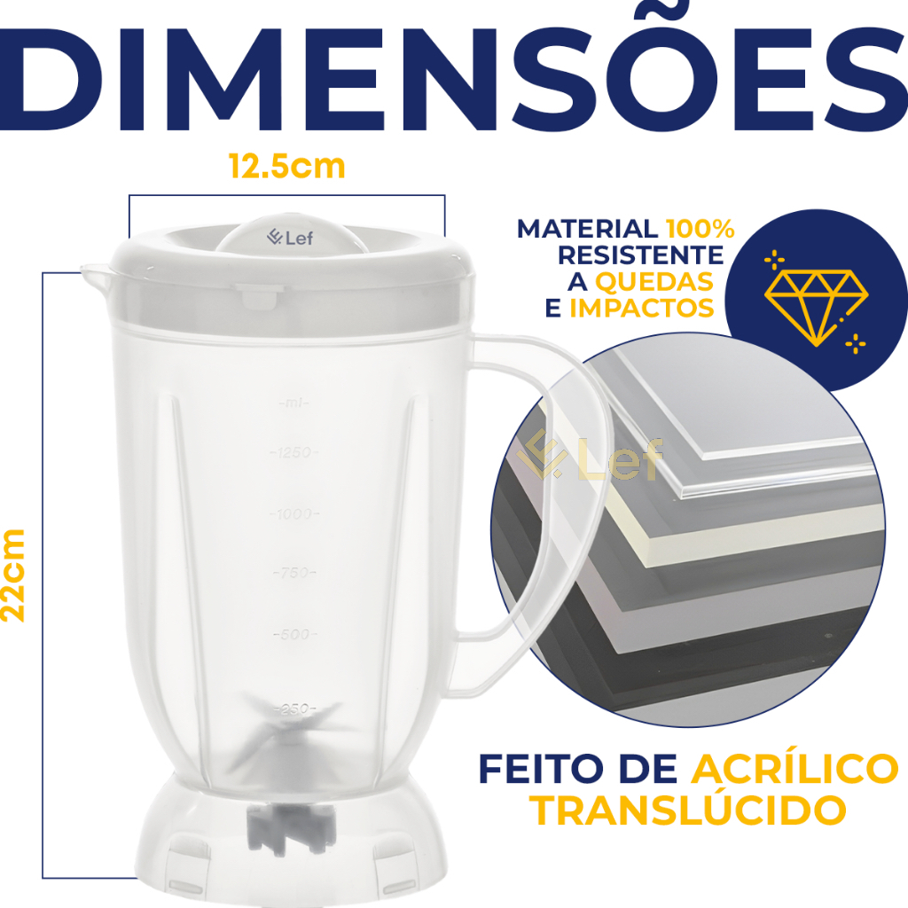 Copo para liquidificador Mondial Line Dinâmico Super Power Ultra Mix Fast Power Power2i translúcido