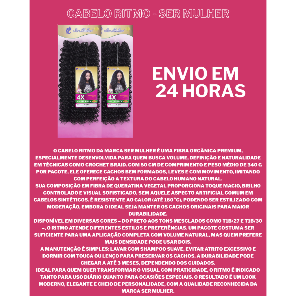 Cabelo Ritmo Ser Mulher Crochet Braid 340g Cacheado Macio Ideal p/ Gypsy Braids Volume Natural Brilho