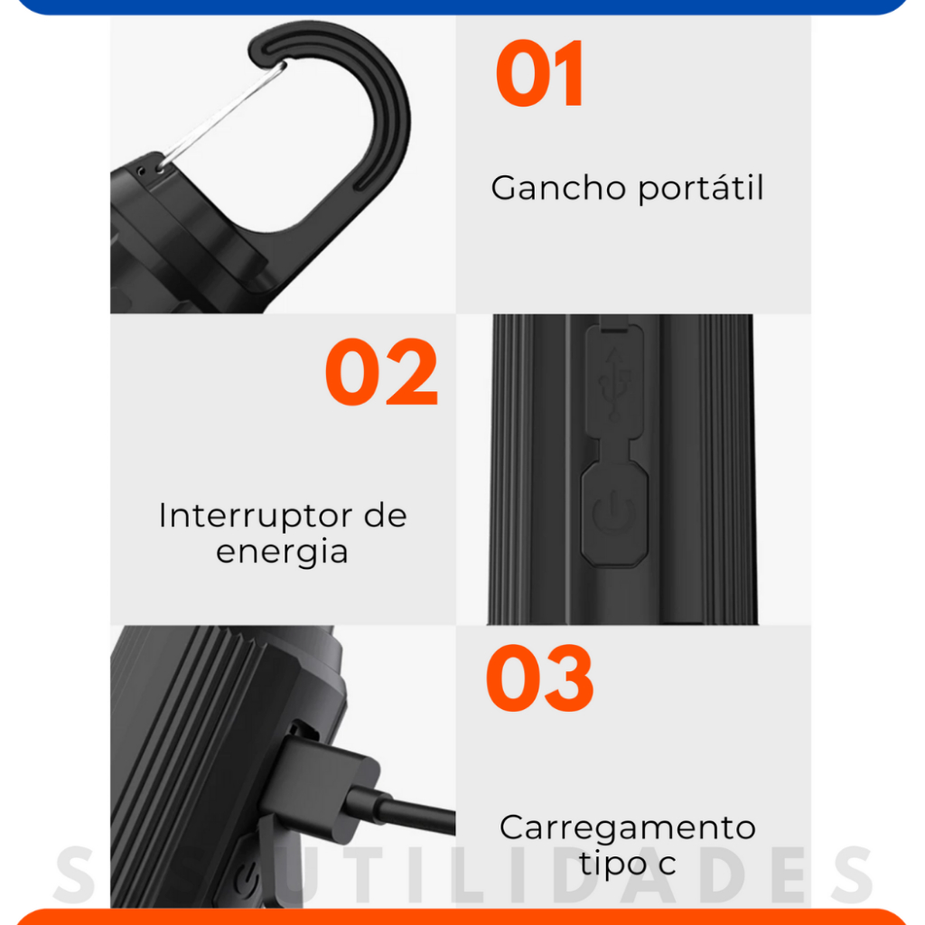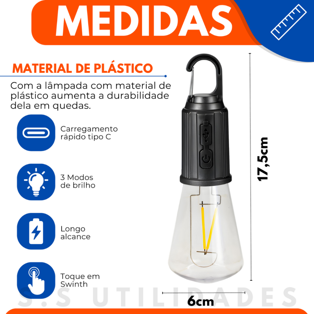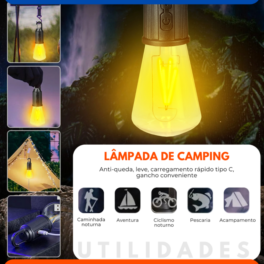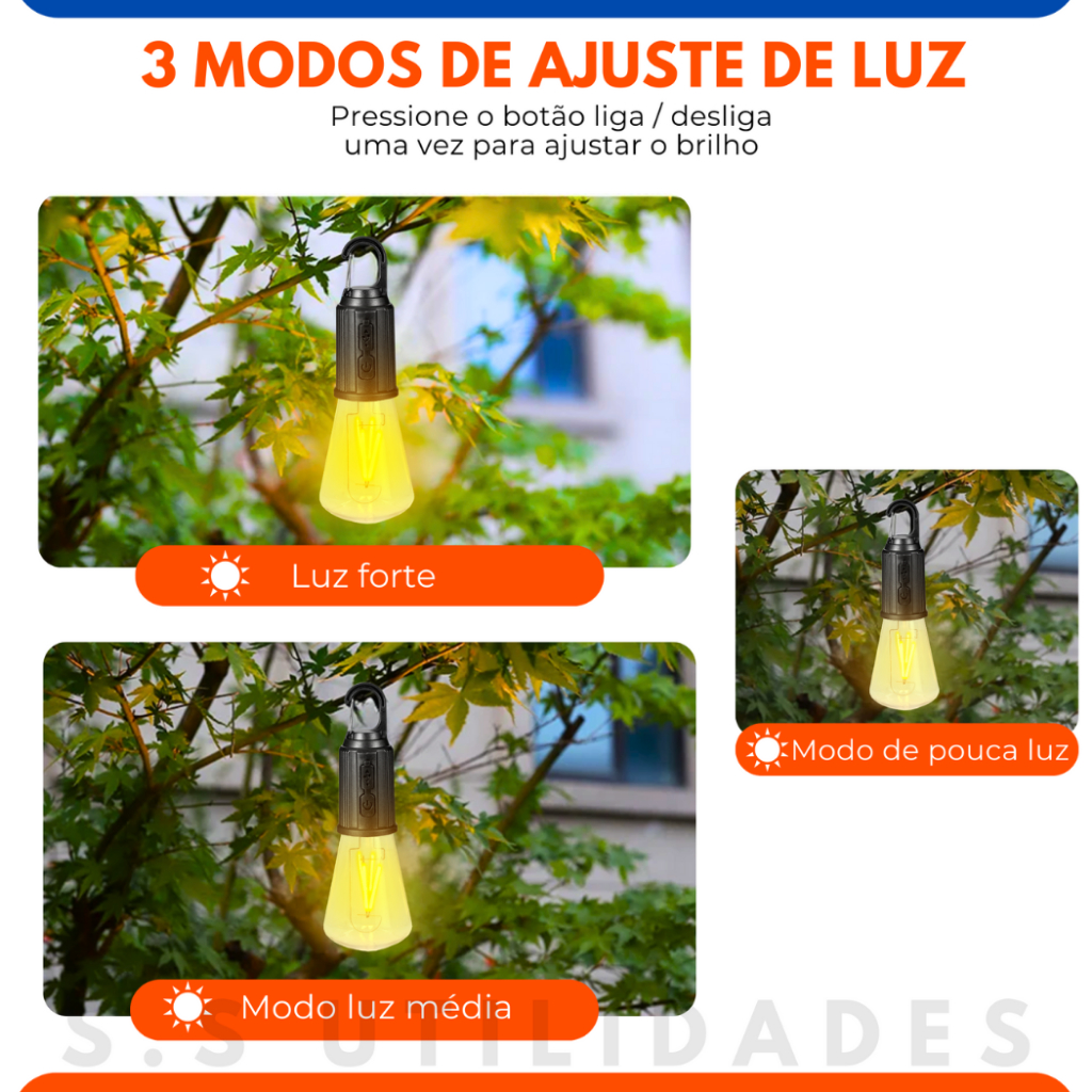 Conjunto 4 Lâmpadas Recarregável Para Barraca De Acampamento E Pesca