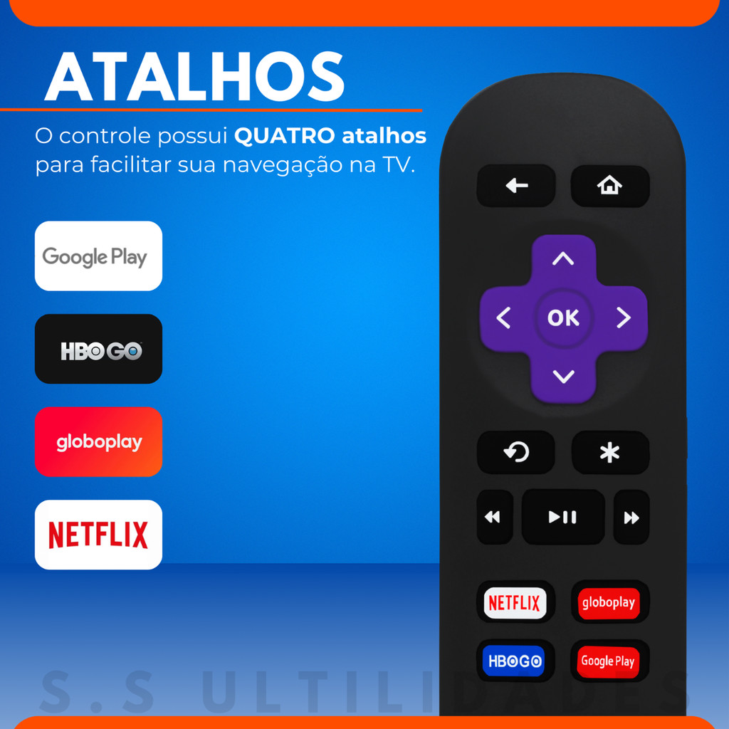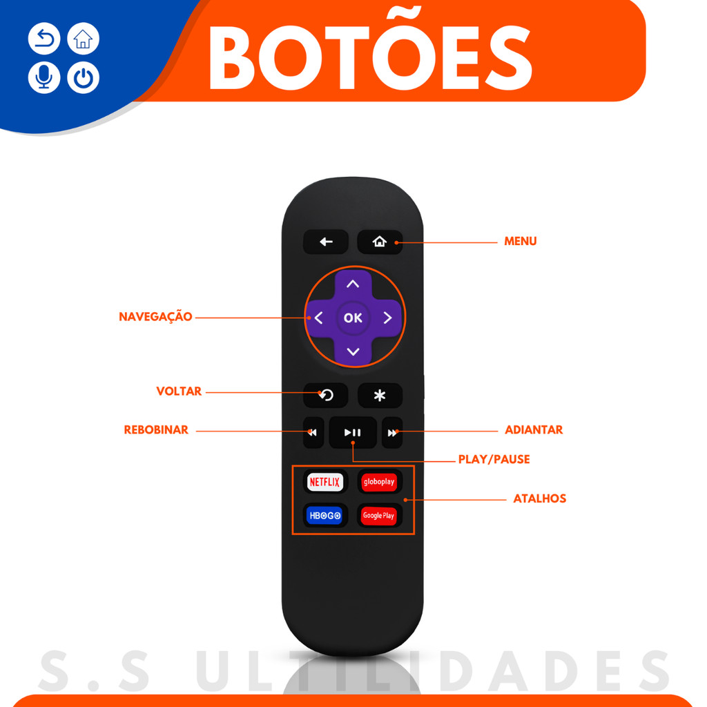 Controle Remoto Compatível Com Roku Express Infravermelho(Preto)