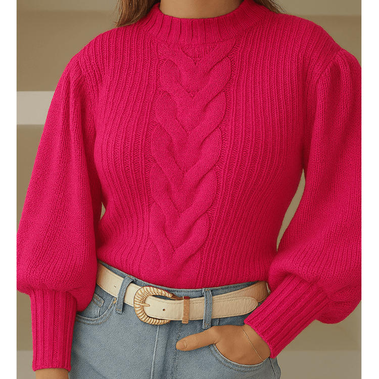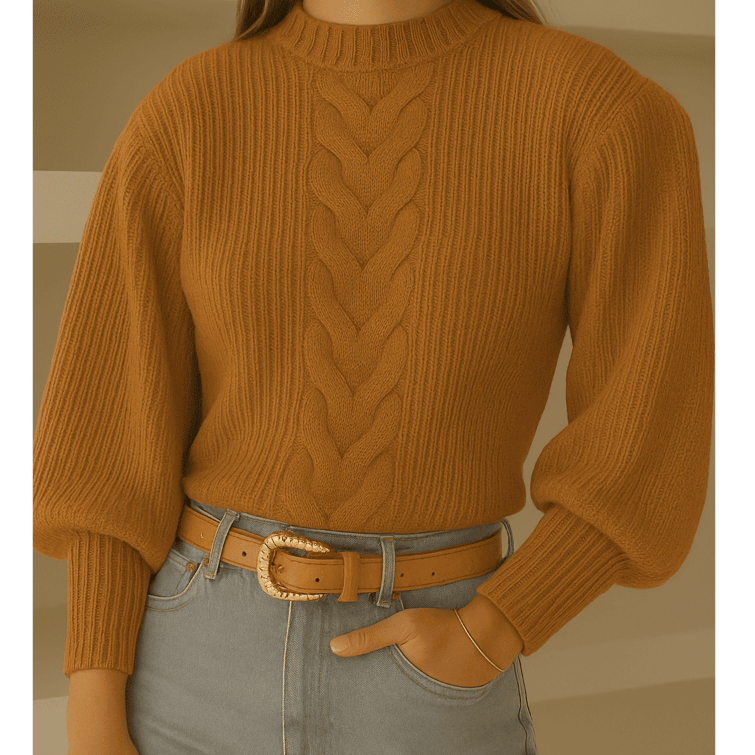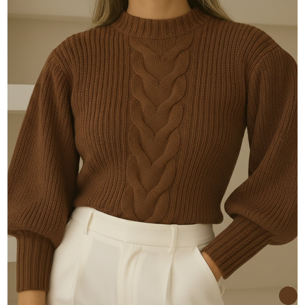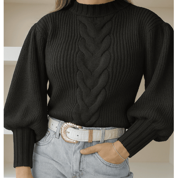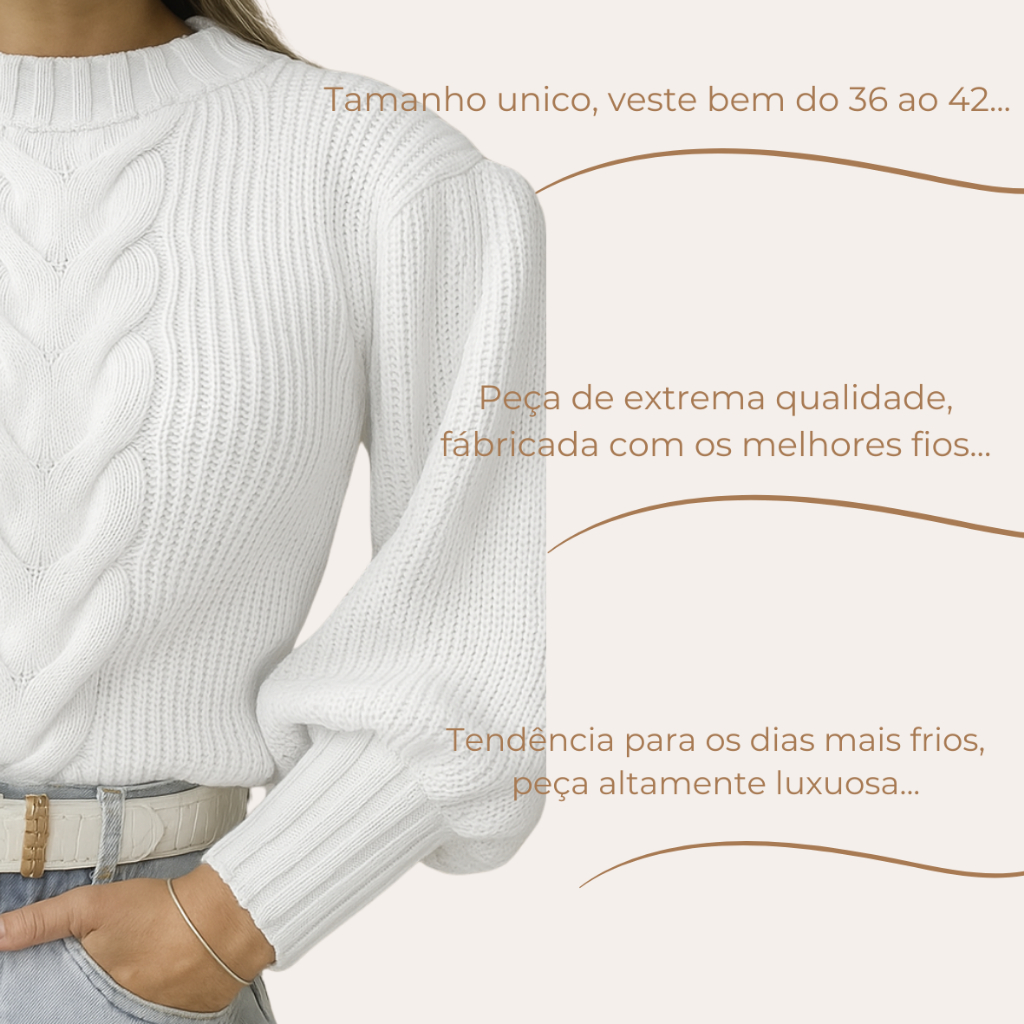 Blusa de frio feminina estilo blogueira com trança tendência 2025 blusa tricot manga bufante