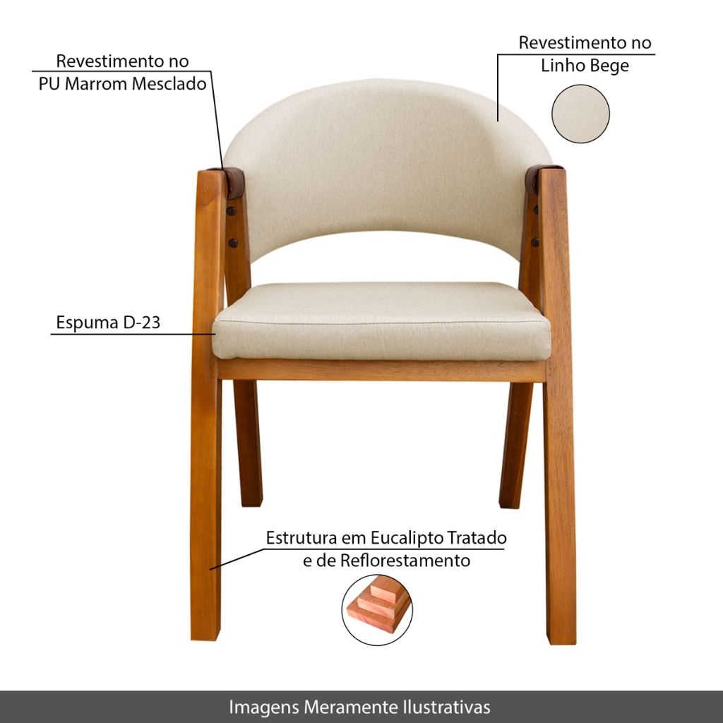 Cadeira Poltrona para Mesa de Jantar Estofada Moderna - KF Móveis