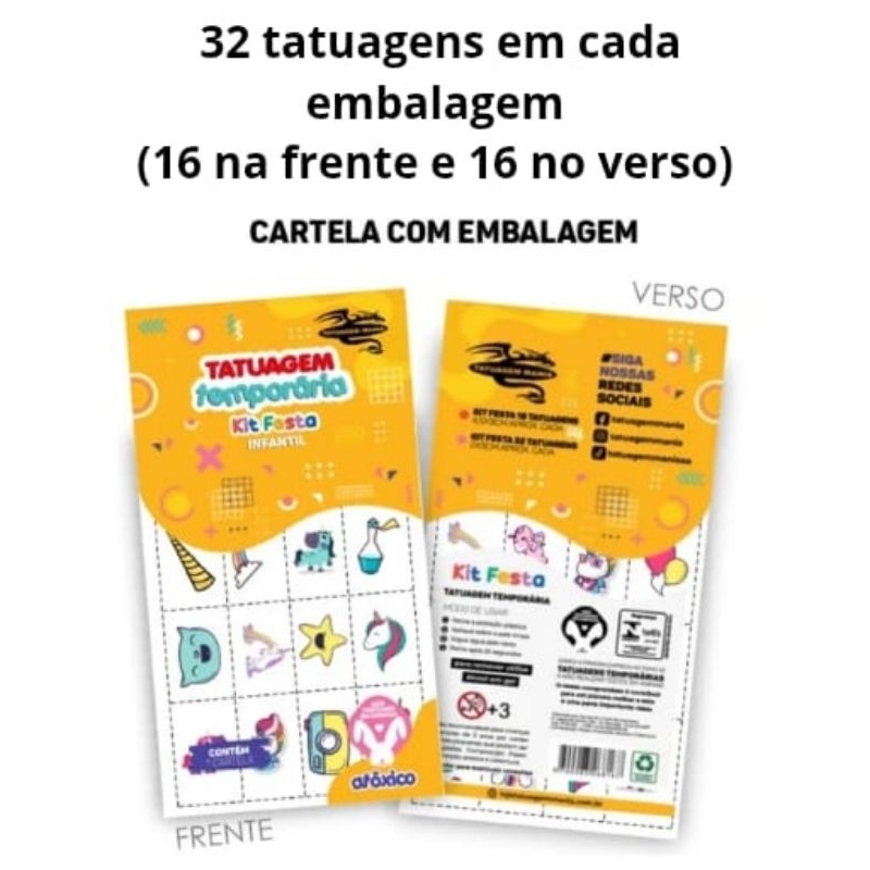 kit 128 tatuagens temporária infantil festas e eventos tema meninas