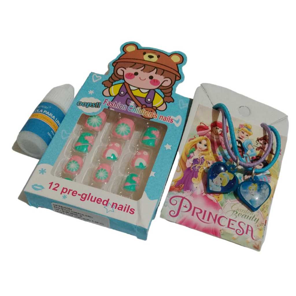 12 unhas postiças infantil kids decoradas + colar tema meninas