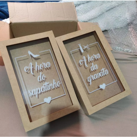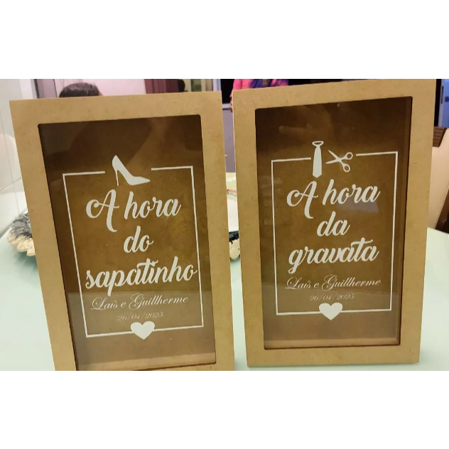 Kit Com 2 Quadros Cofres Hora Da Gravata E Hora Do Sapatinho mdf -Para casamento e festas