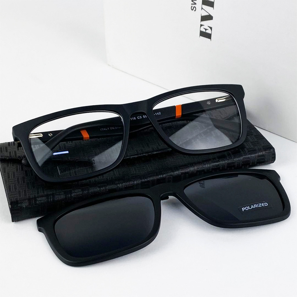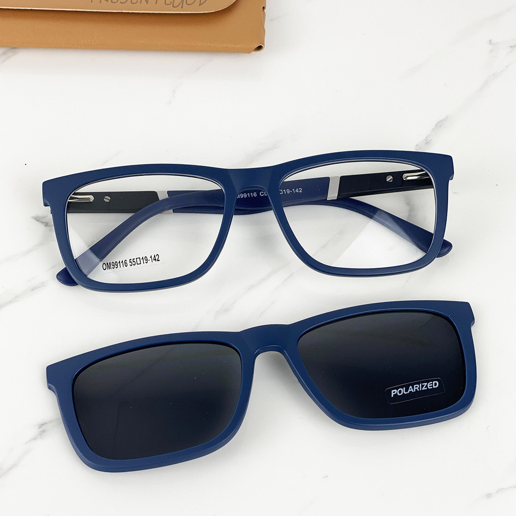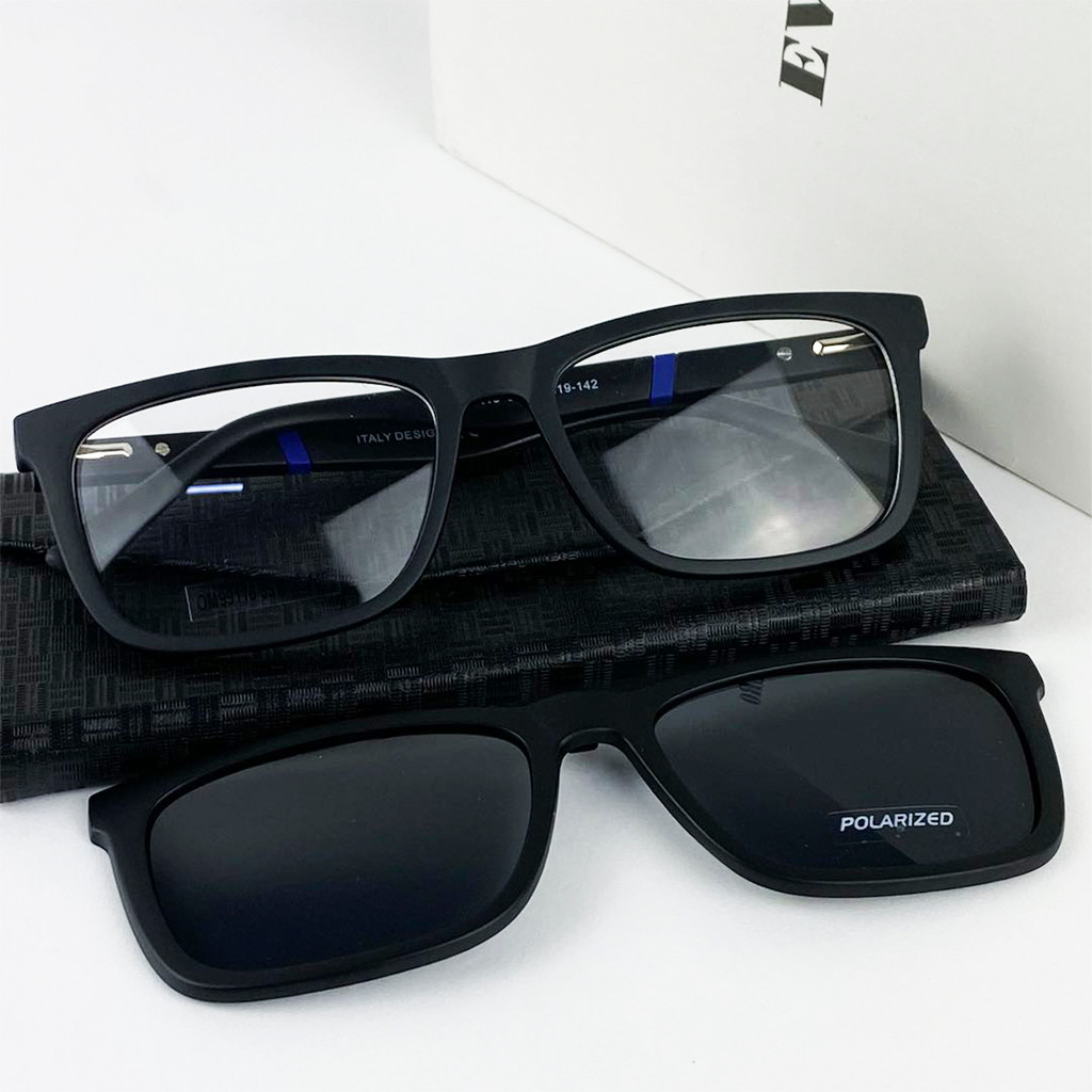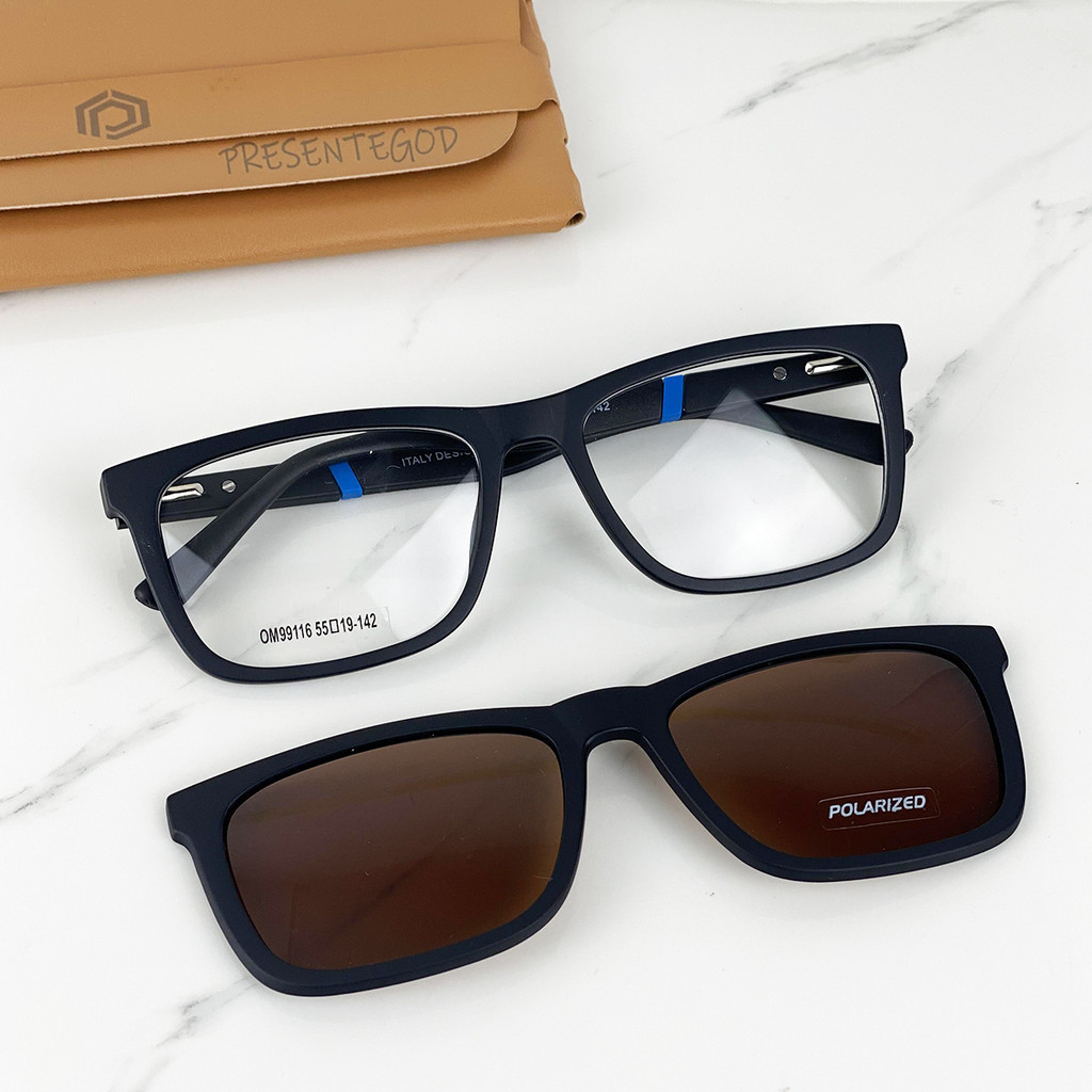 Armação De Óculos Masculino Quadrado Haste Emborrachada Resistente + Clipon Polarizado Envio Imediato Cm233