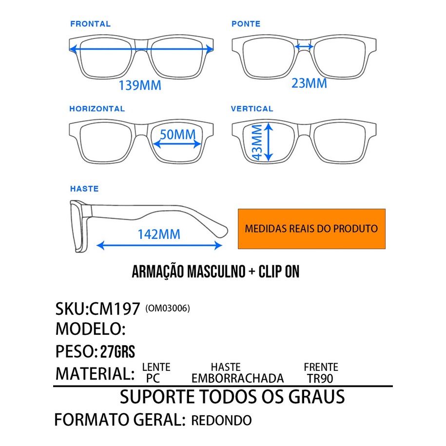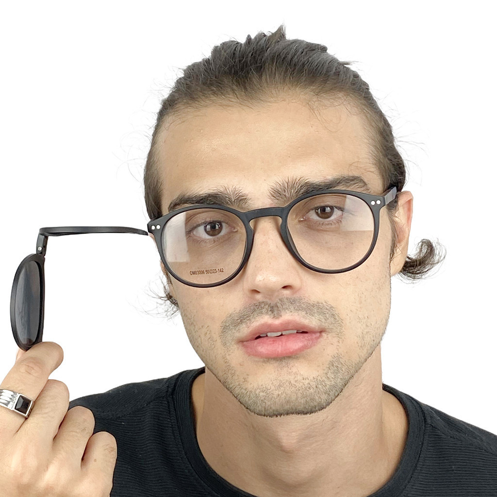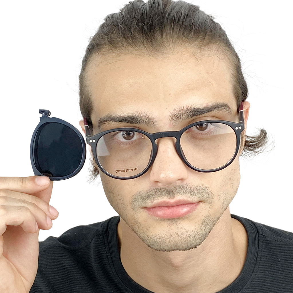 Armação Masculina Sem Grau Com Lente Clipon Dobravel Cm197