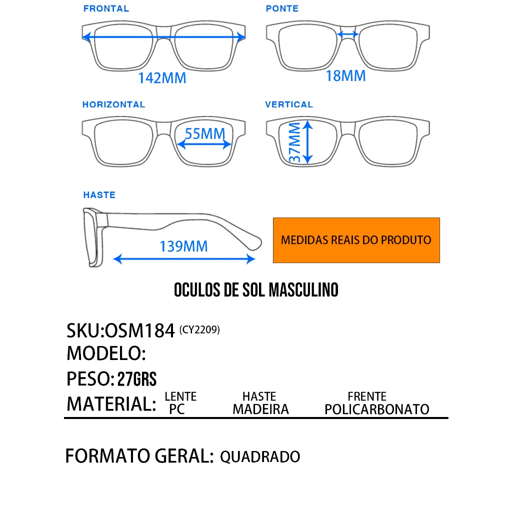 Óculos De Sol Masculino Haste Em Madeira OSM184