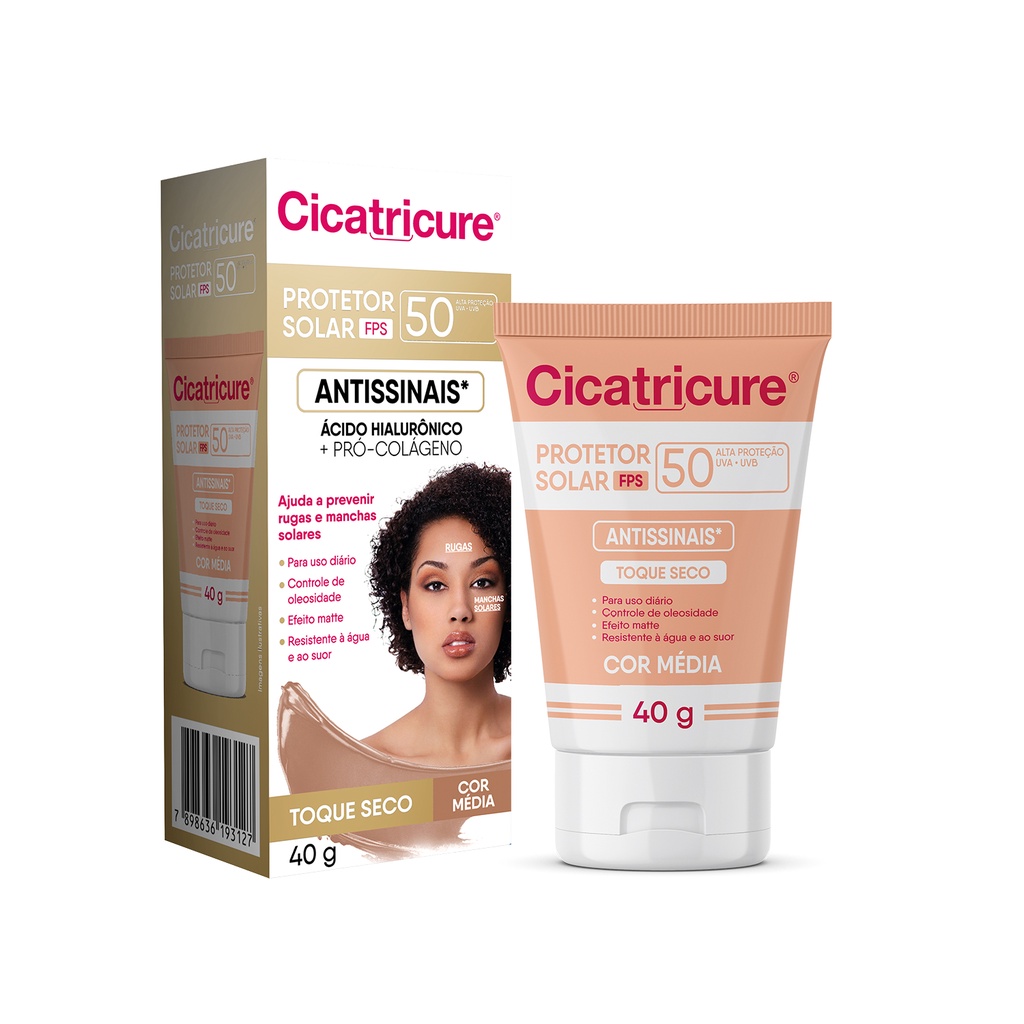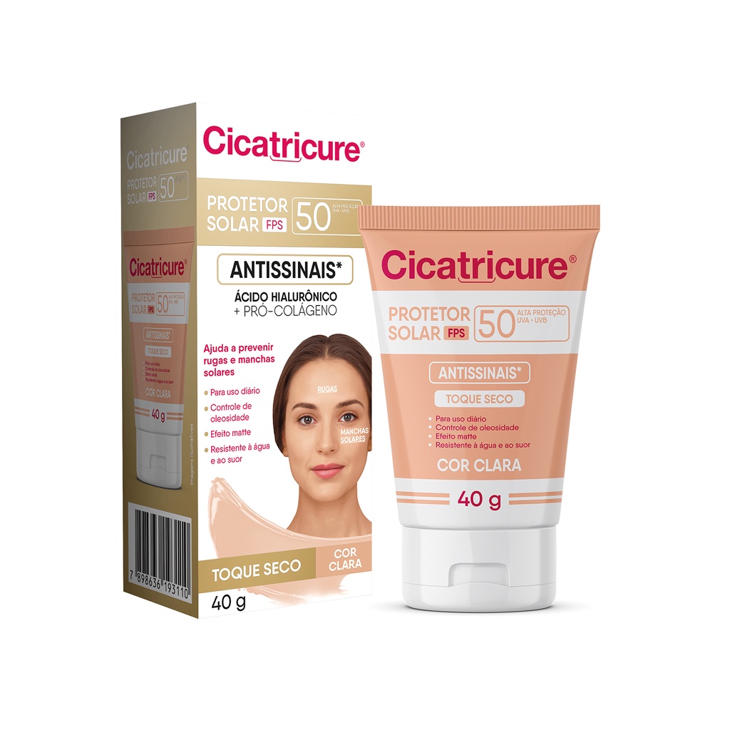Protetor Solar Com Cor Cicatricure FPS50 Ácido Hialurônico Antissinais 40G