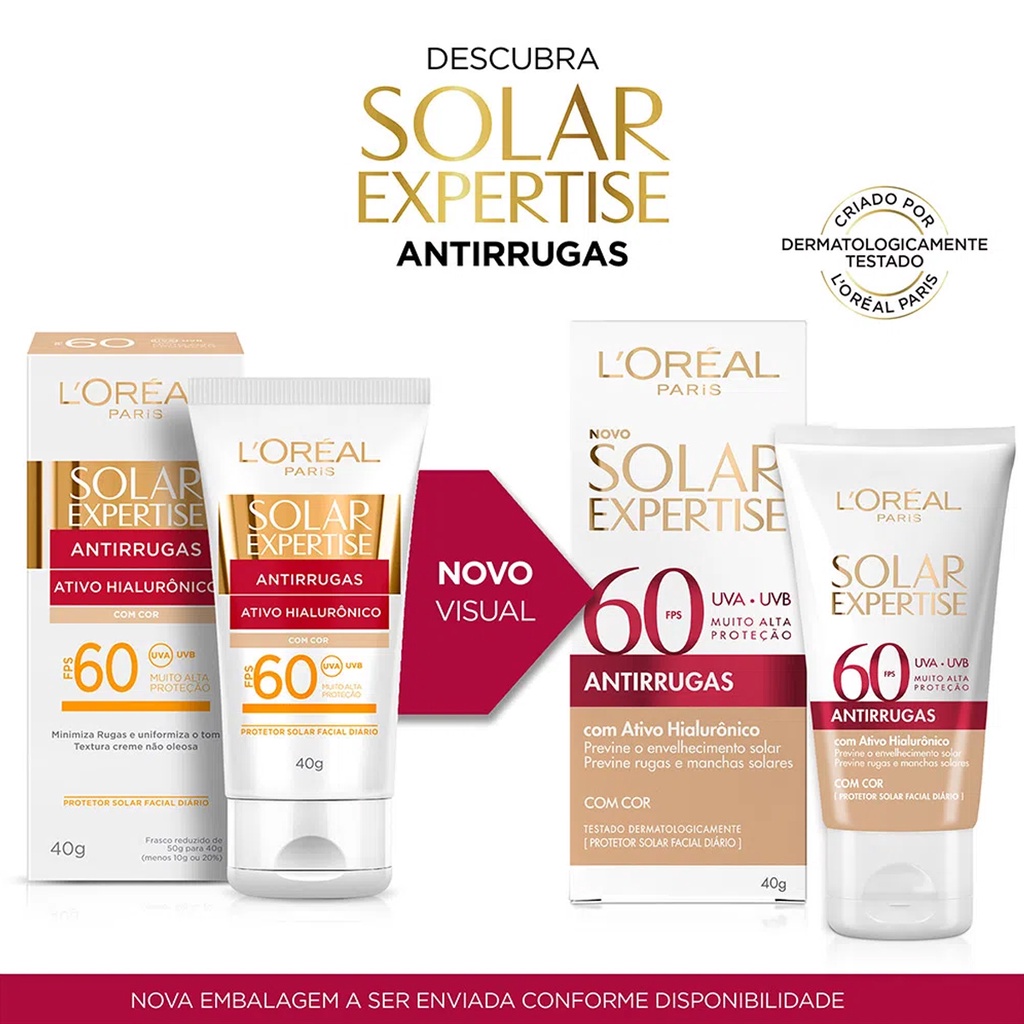 Protetor Solar Expertise FPS60 Antirrugas Com Cor Loréal Paris 40g