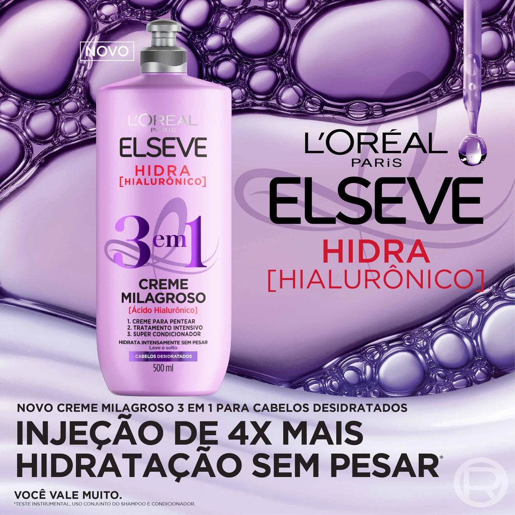 CREME MILAGROSO ELSEVE 3 EM 1 HIDRA HIALURÔNICO HIDRATANTE 500ML