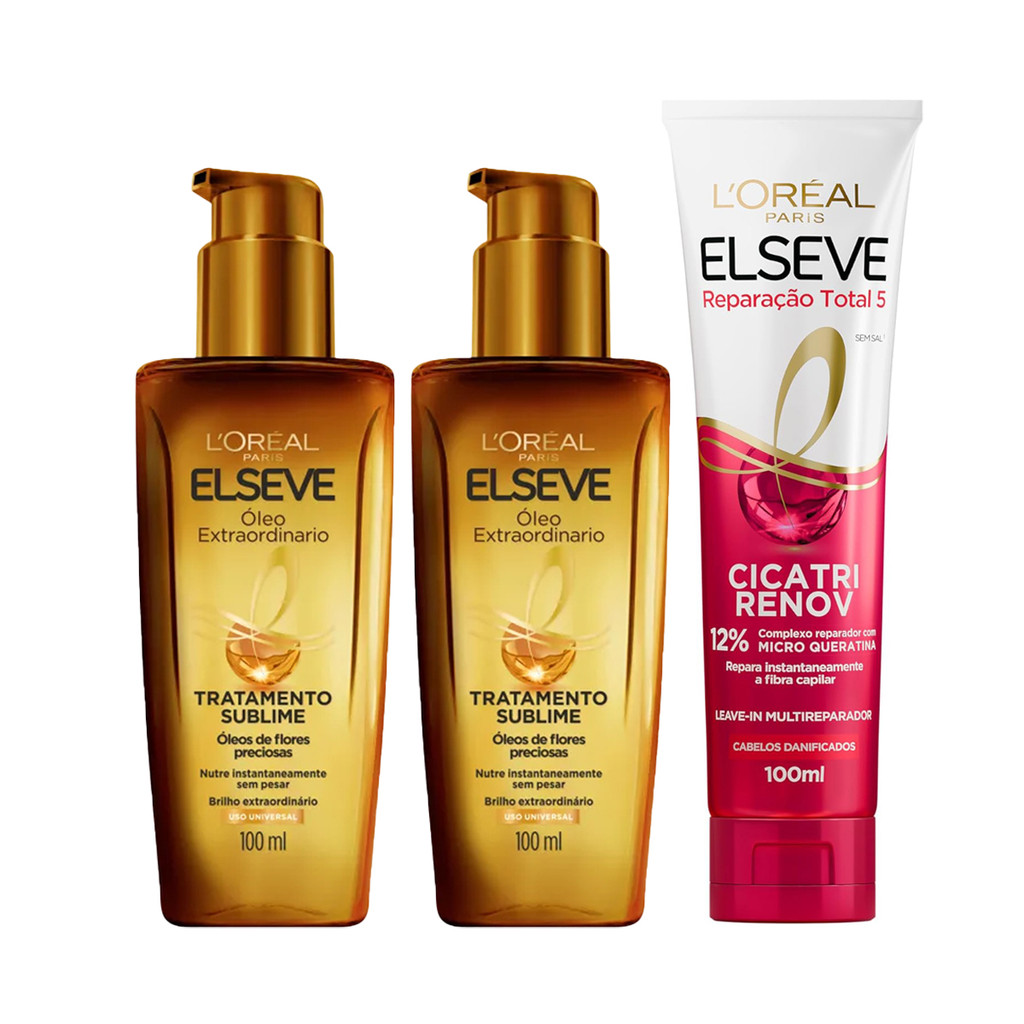 KIT 2 ÓLEO EXTRAORDINÁRIO + LEAVE-IN CICATRI RENOV 100ML ELSEVE