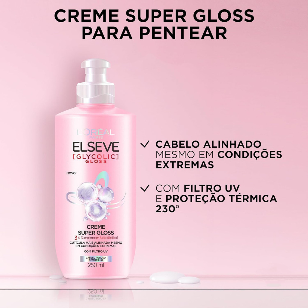 CREME PARA PENTEAR ELSEVE GLYCOLIC SUPER GLOSS 250ML