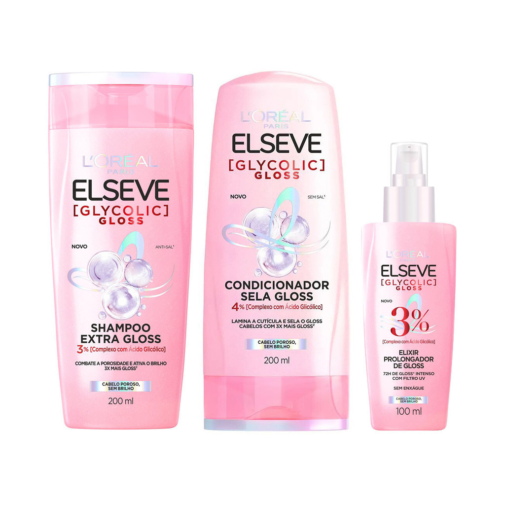 KIT ELSEVE GLYCOLIC GLOSS SHAMPOO + COND + SÉRUM LORÉAL