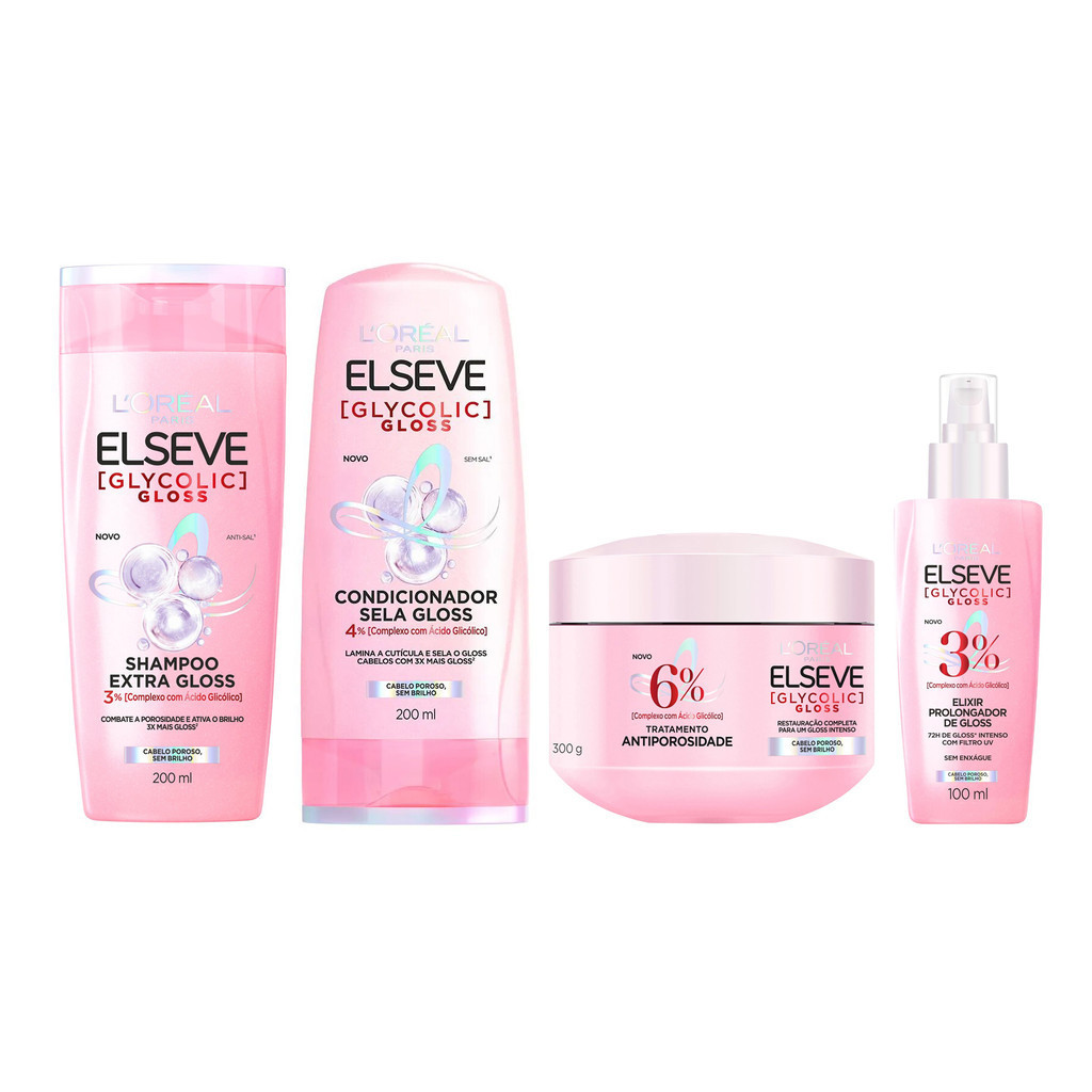KIT ELSEVE GLYCOLIC GLOSS SHAMPOO + COND + MÁSC + SÉRUM LORÉAL