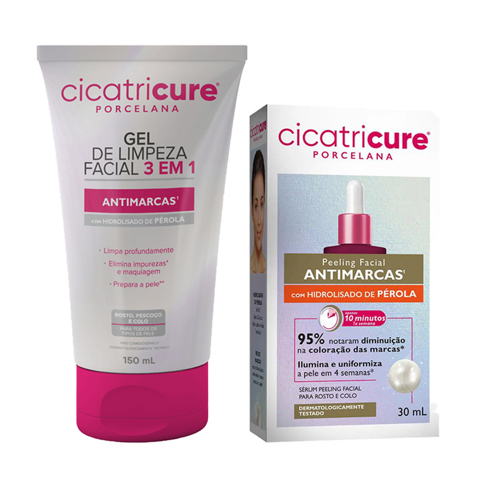 PEELING FACIAL 30ML + GEL DE LIMPEZA 3 EM 1 150ML CICATRICURE PORCELANA