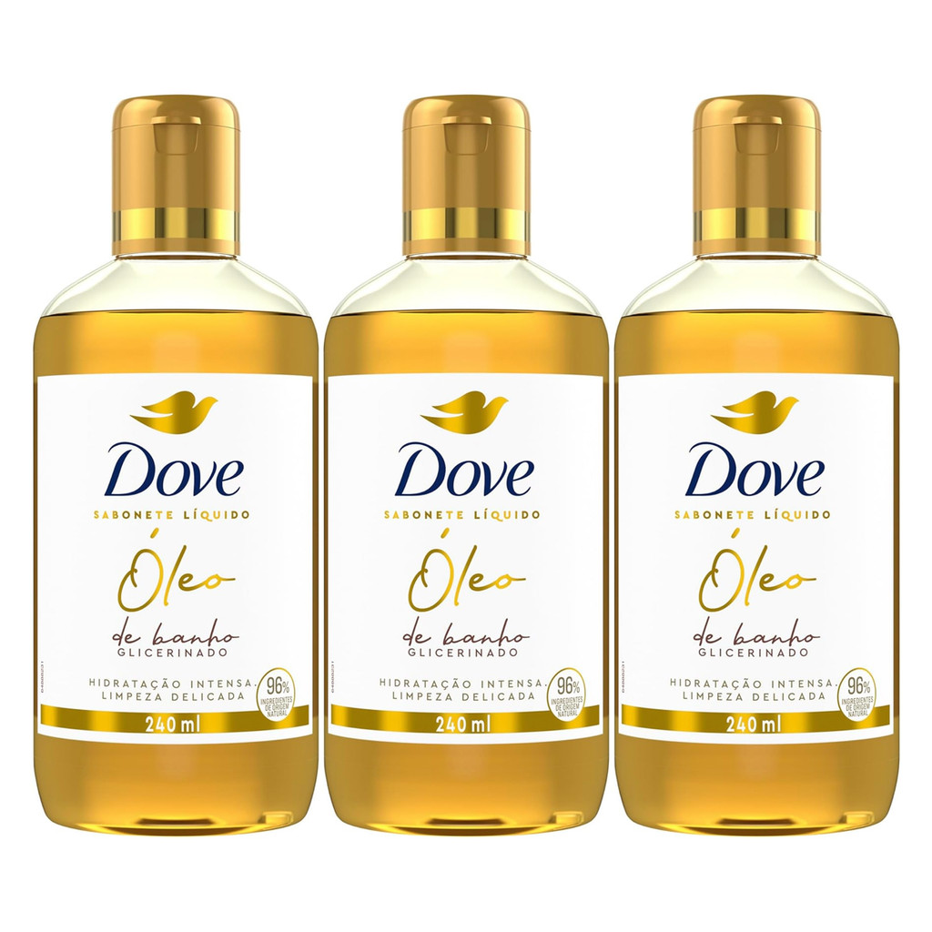 KIT C/3 SABONETE LIQUÍDO ÓLEO DE BANHO GLICERINADO 240ML DOVE