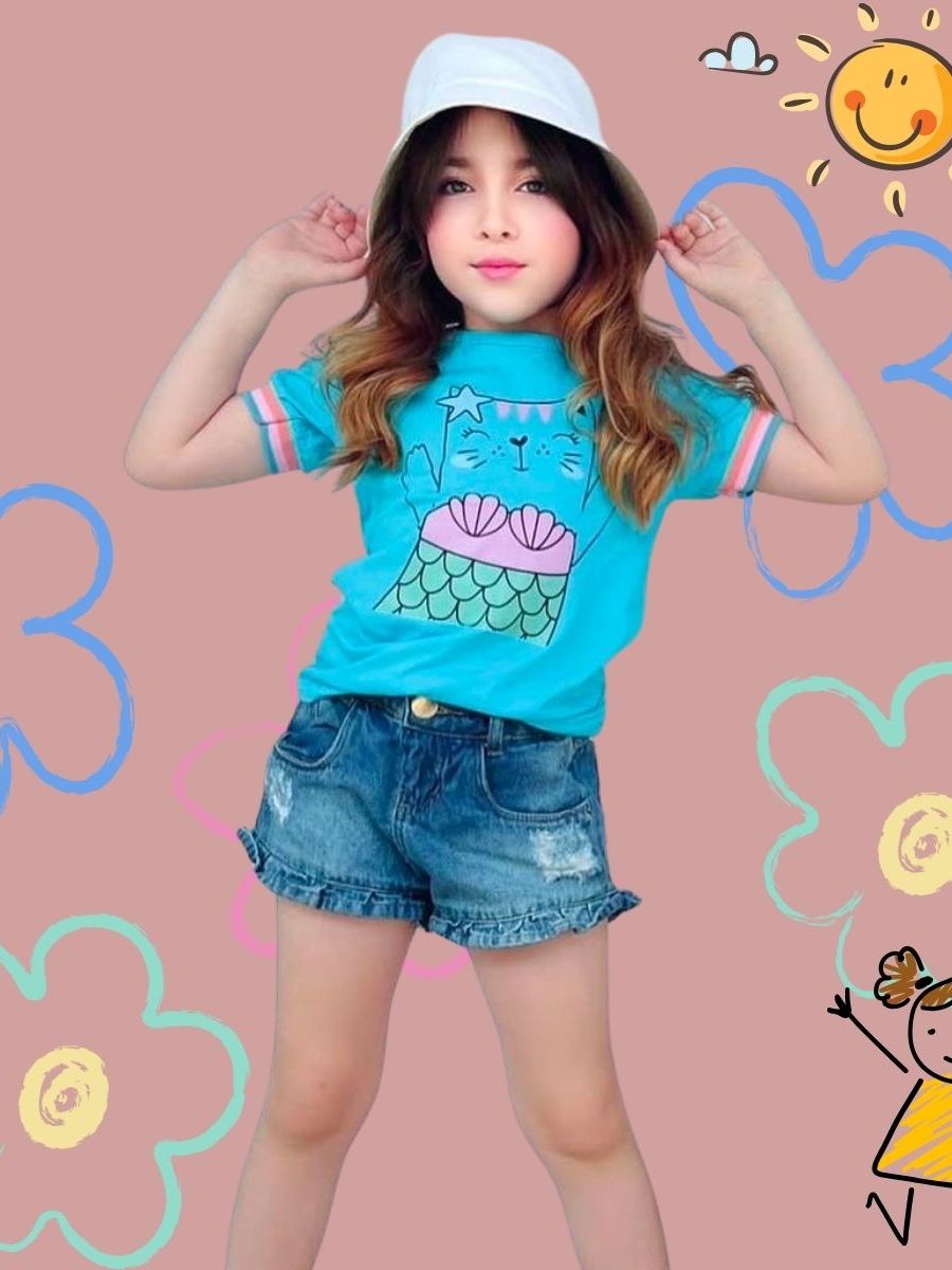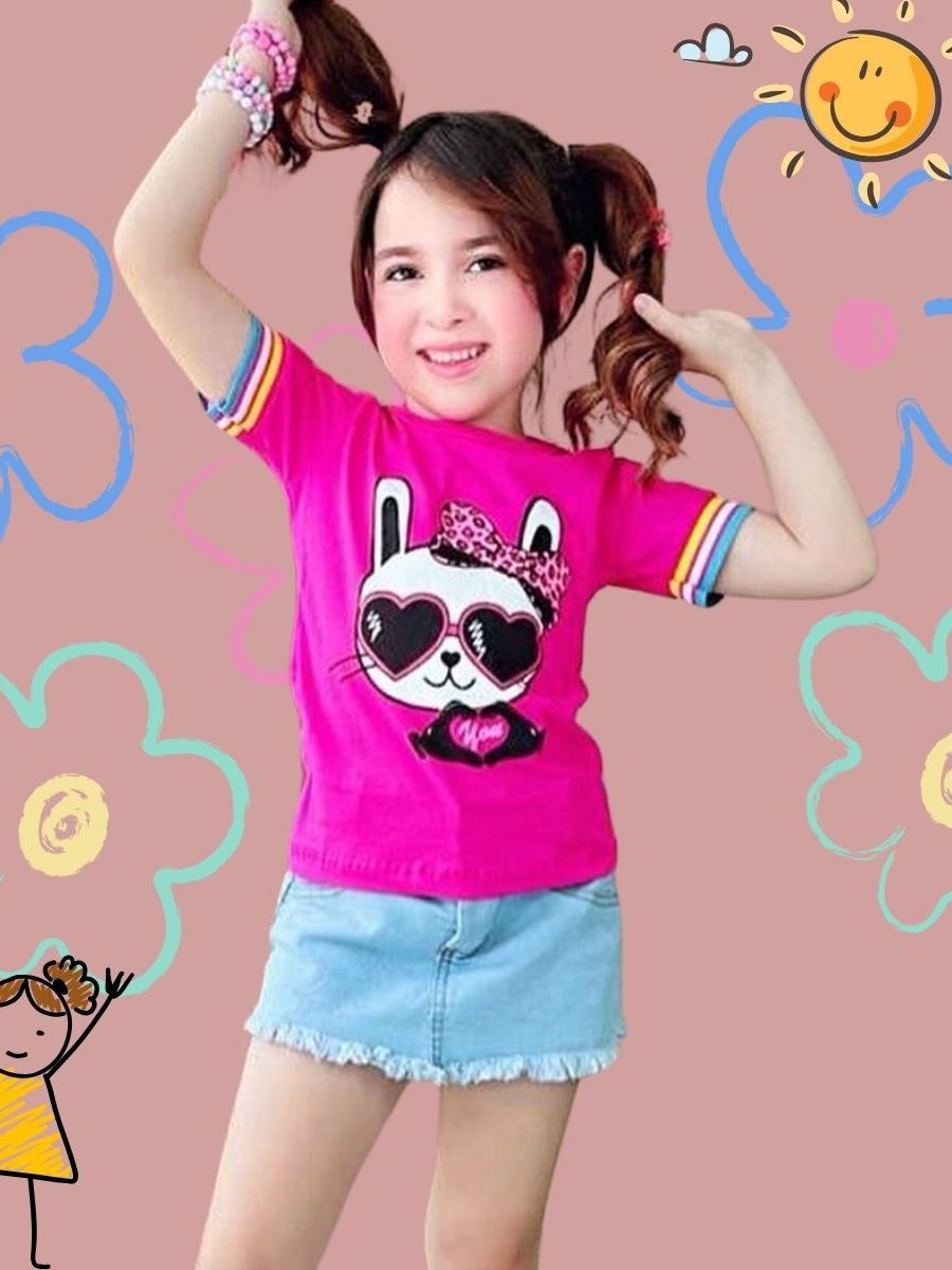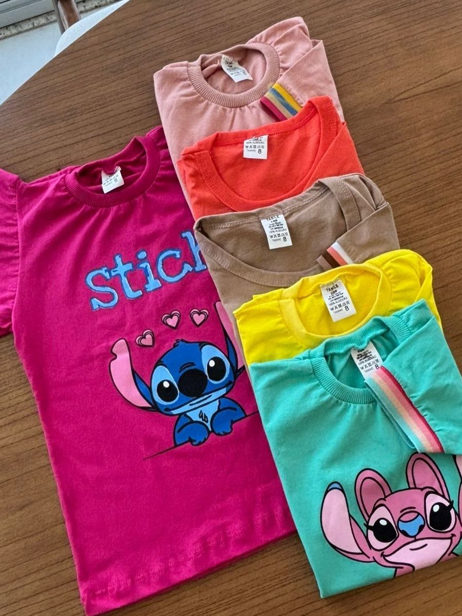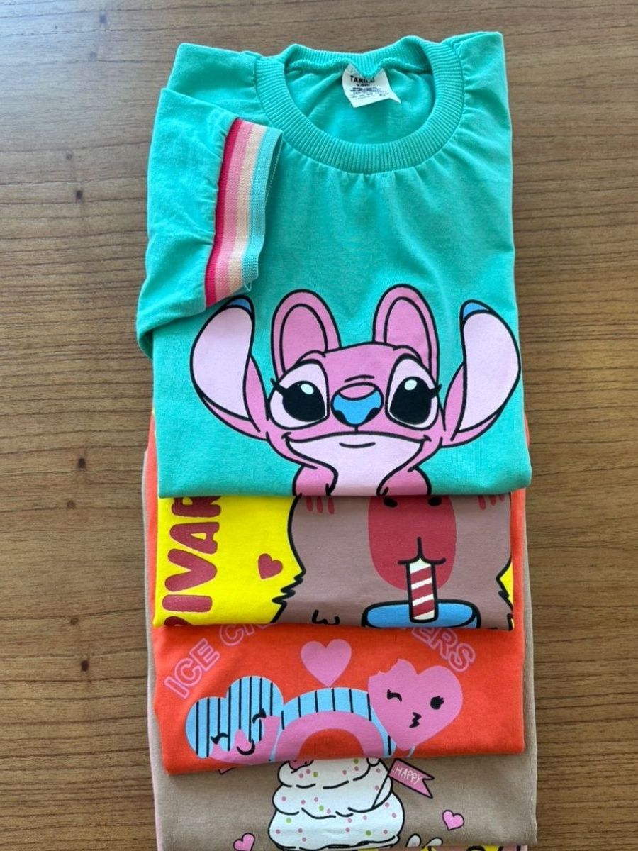 kit Com 5, Kit com 3 ou Kit com 2 Peças Tshirt infantil blusinha feminina manguinha bufante + barrinha colorida estampas