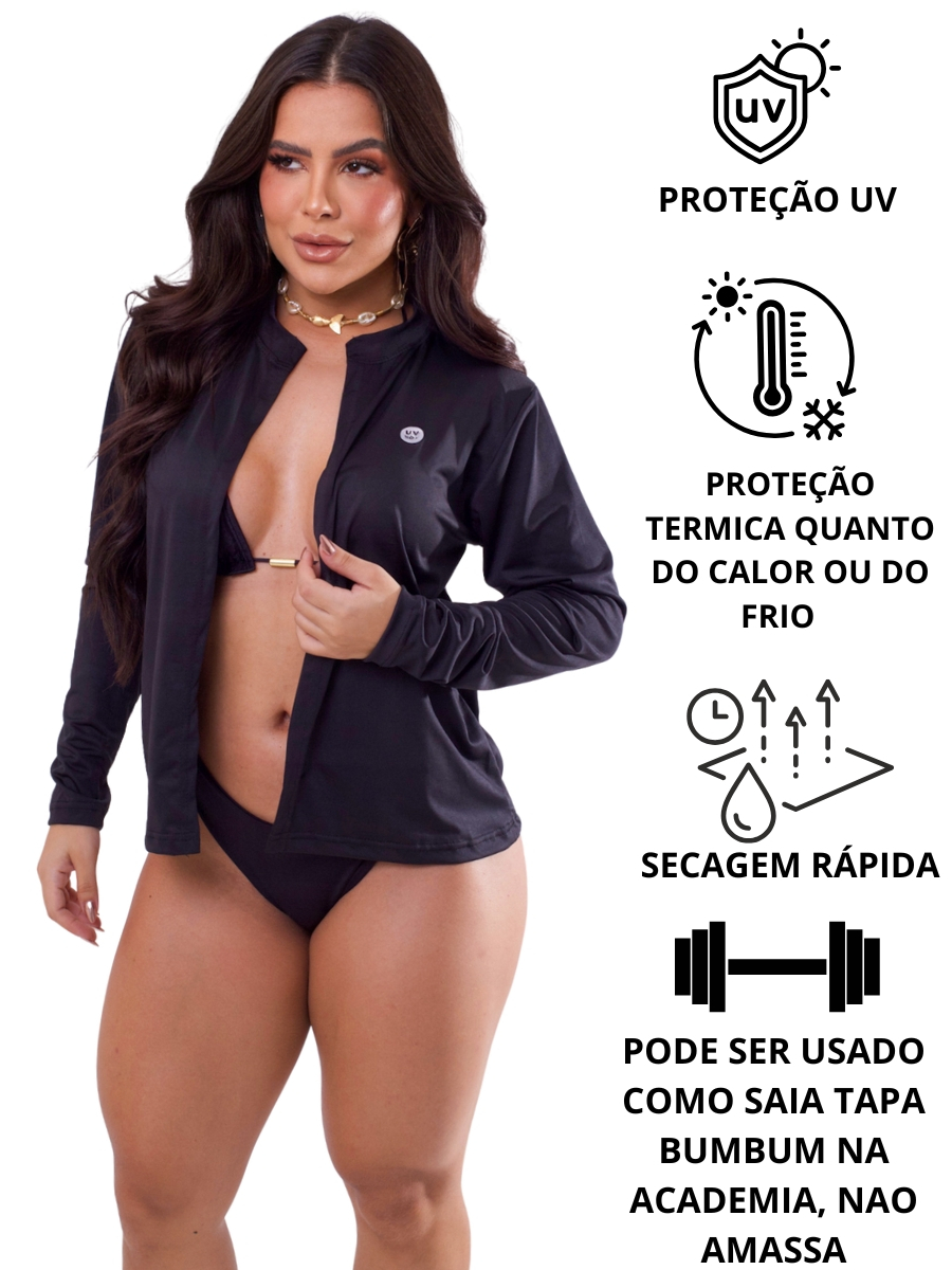 Kit 3 blusas femininas academia uv manga longa slin fit modelo casaco