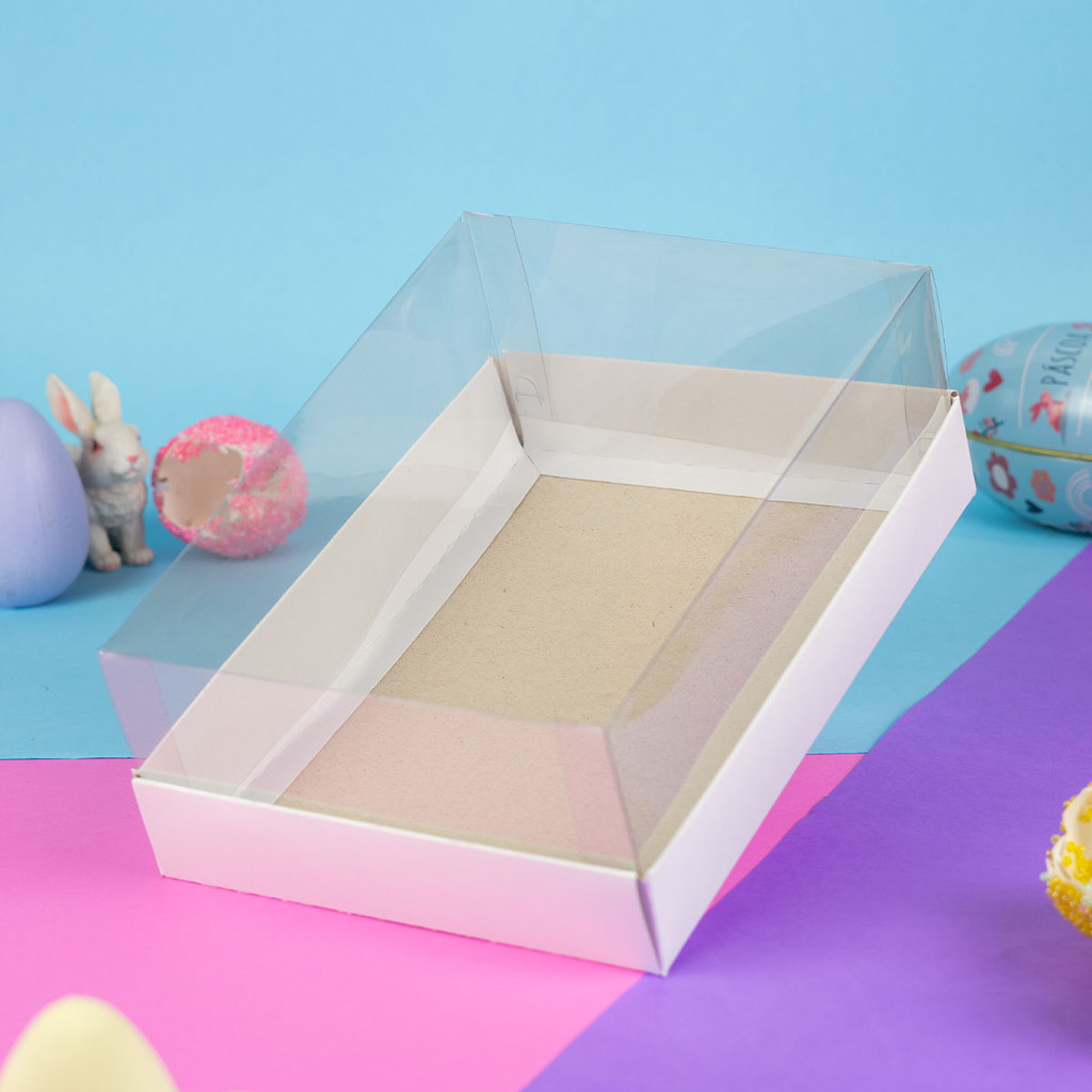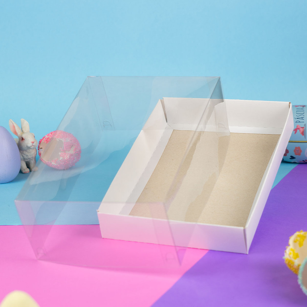 10 Caixas com Tampa Acetato para Presentes, Artesanatos 21x15x7,5 cm - Branco Duplex