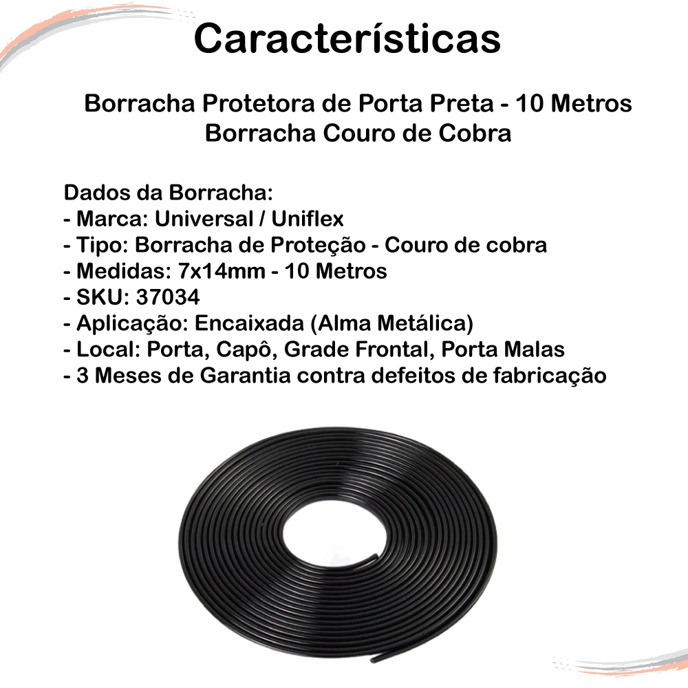 Borracha Mini Couro De Cobra Proteção Porta 7X10Mm Preta 10M