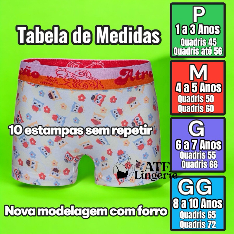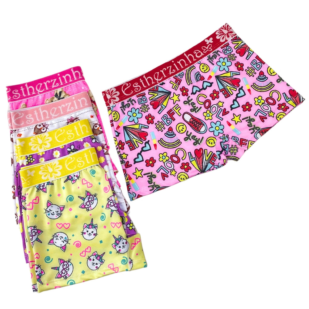 kit 10 calcinha boxer infantil menina shortinho box de microfibra macia com cós grosso segunda pele
