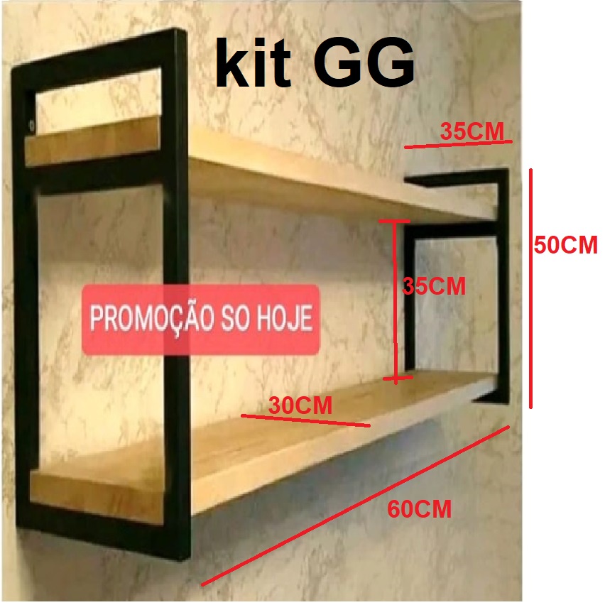 Prateleira Industrial Grande KIT GG Suspensa Quarto Cozinha Escritórios Livros Banheiro MDF Barato Oferta