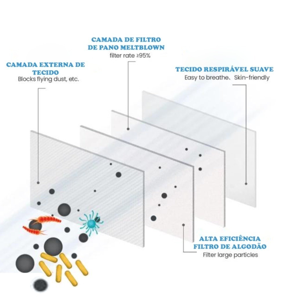 Máscara Descartavel Tnt DE Proteção KF94 4 Camadas Saúde Respiratória Reutilizável