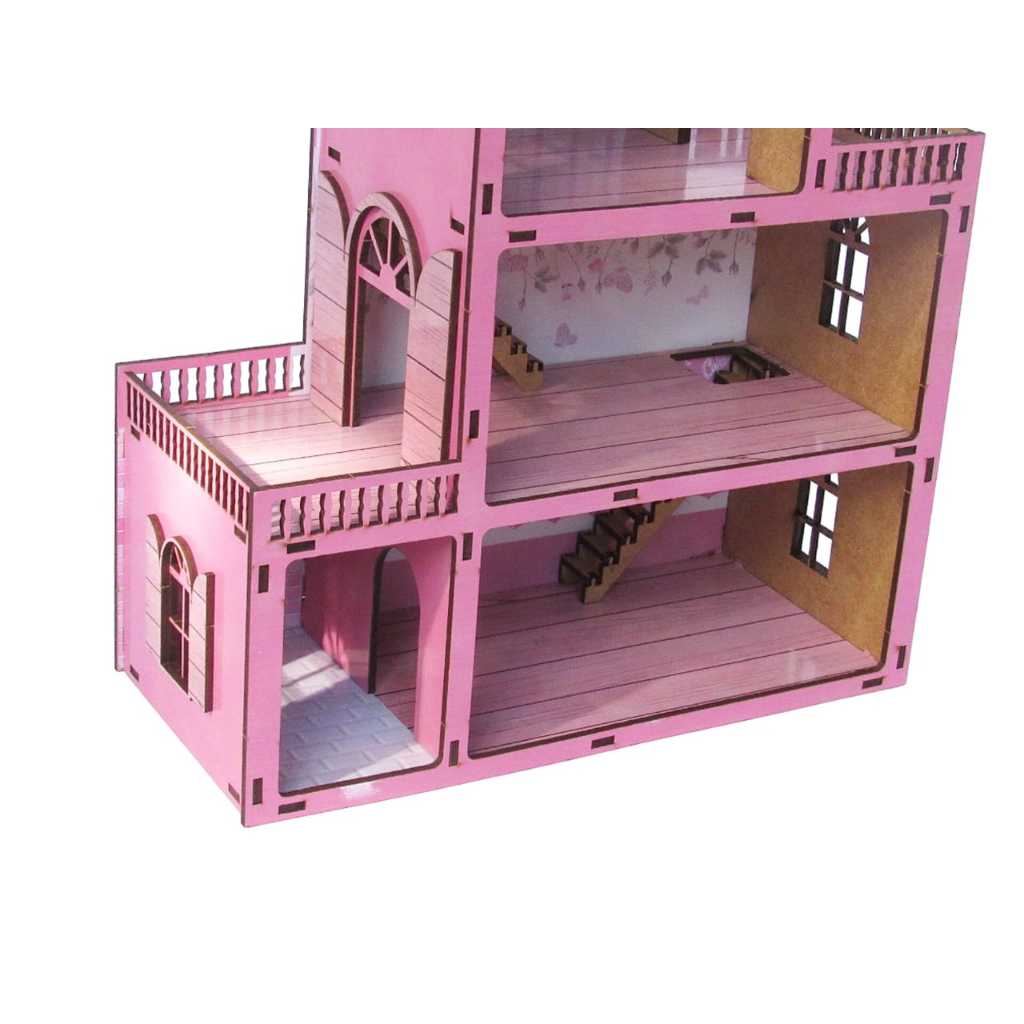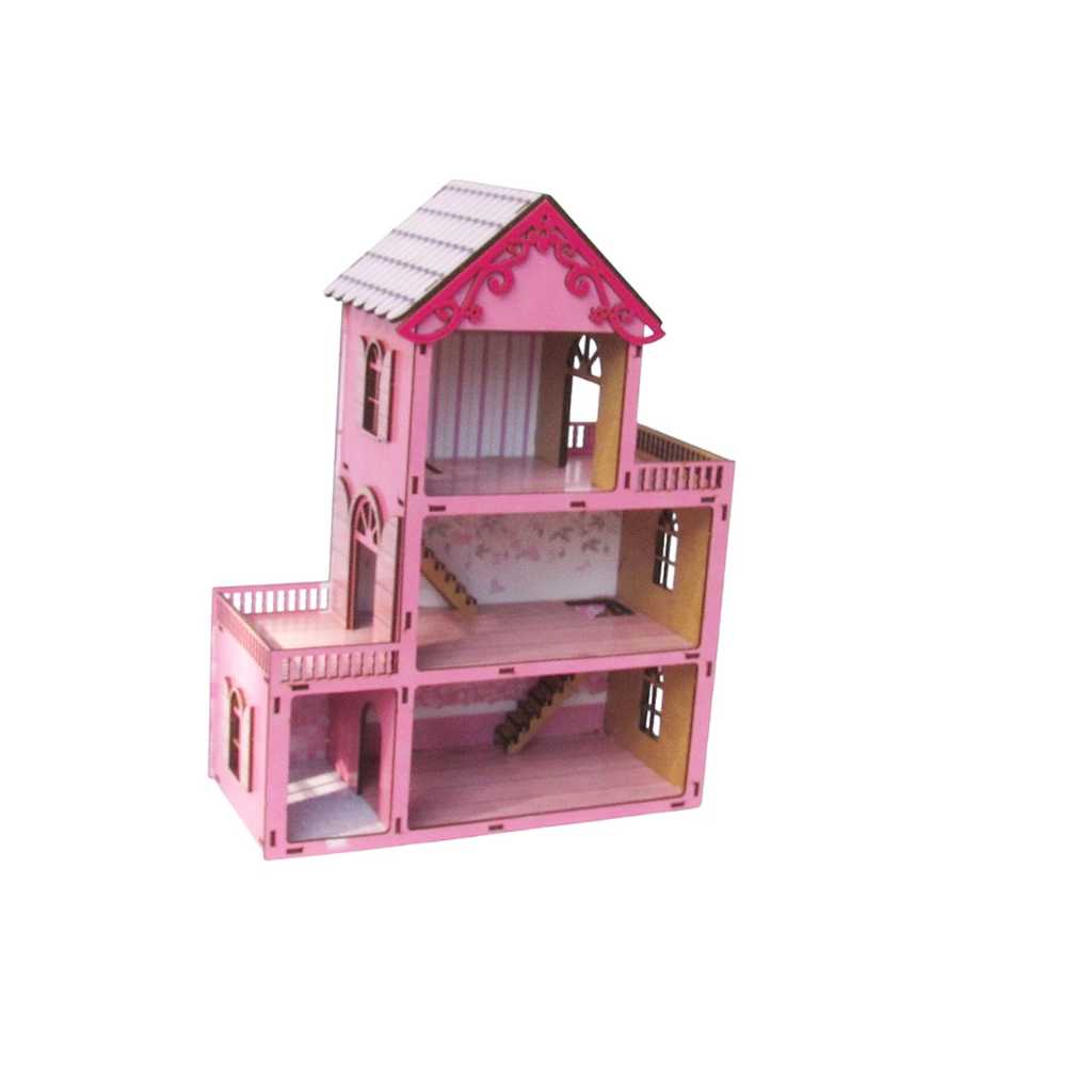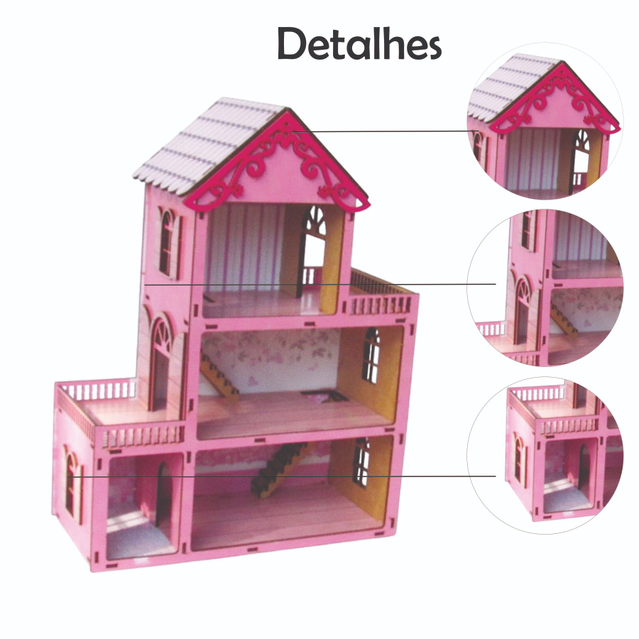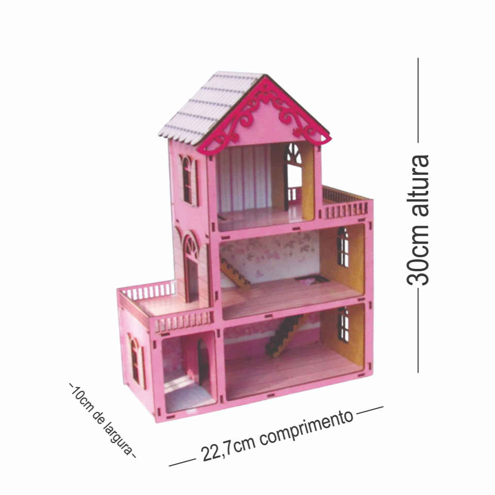 Casinha de boneca colorida 30cm com 20 mini moveis em mdf para presentear