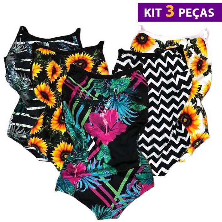 Kit 3 Body Feminino Suplex Maio Feminino Bori Estampado