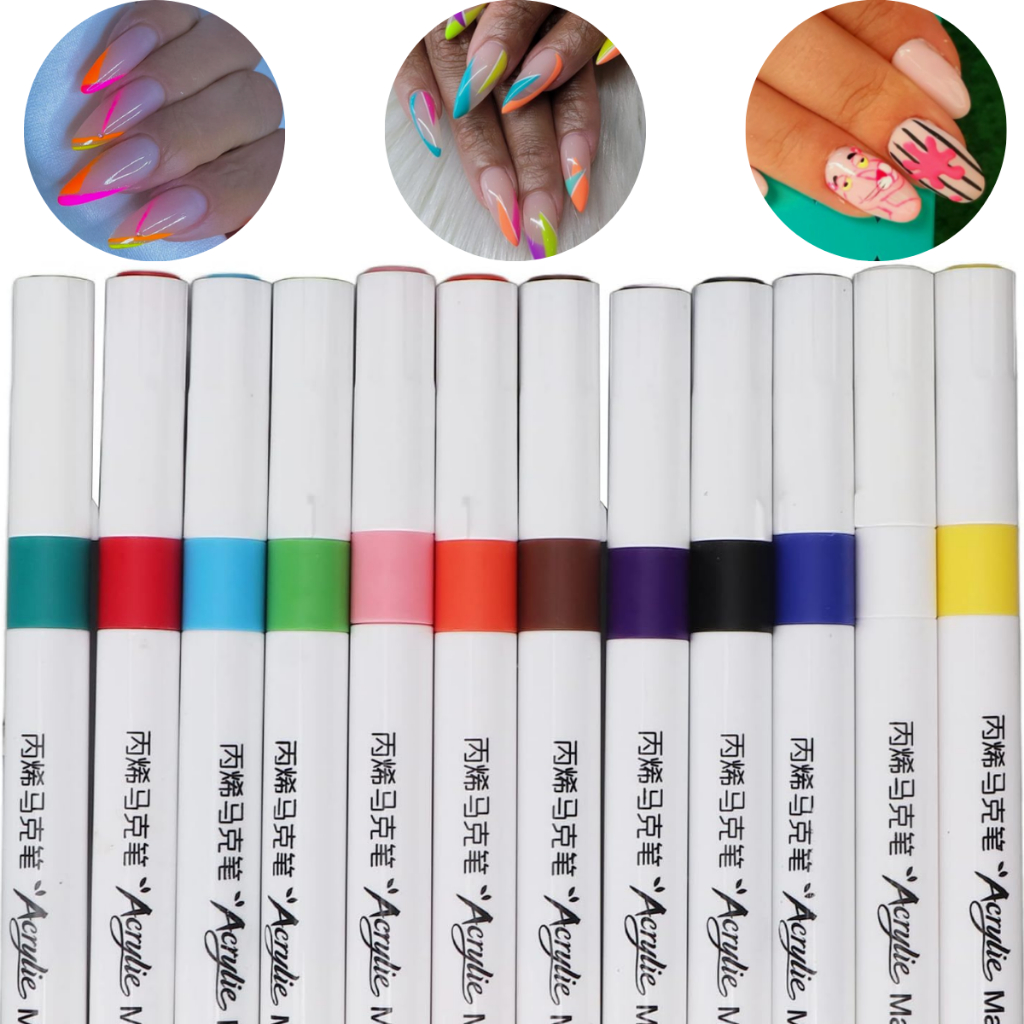 Caneta Nails Art Caneta de Manicure Caneta Desenho Unha Caneta Acrílica Paint 12 Cores Para Decoração Unhas Acrílica