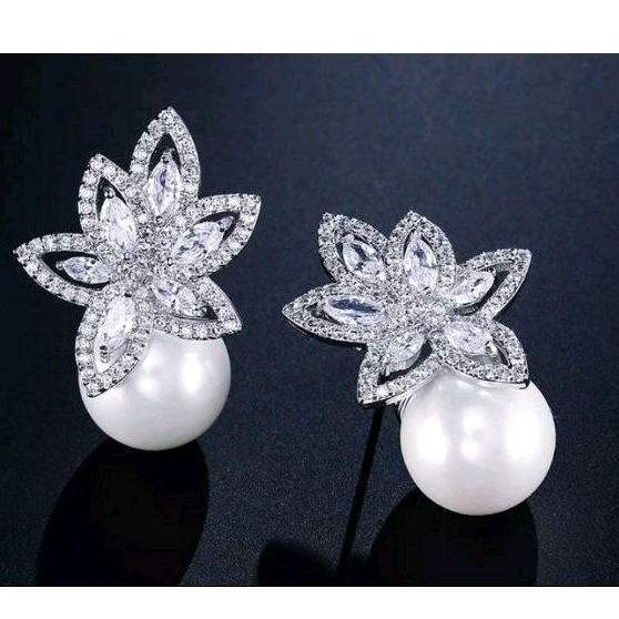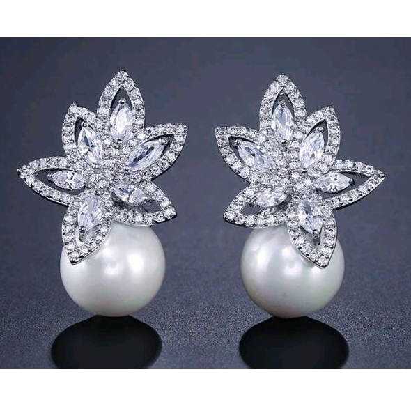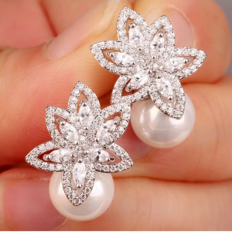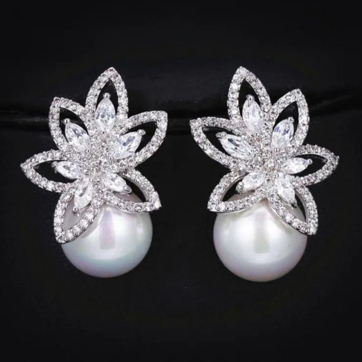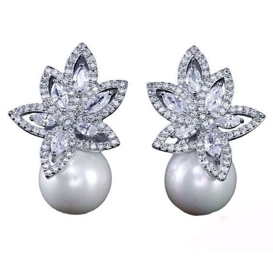 Brinco Feminino Prata com Zirconias e Perola Pequeno Delicado Luxo Noiva Festa Casamento