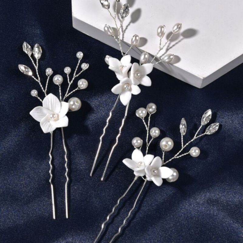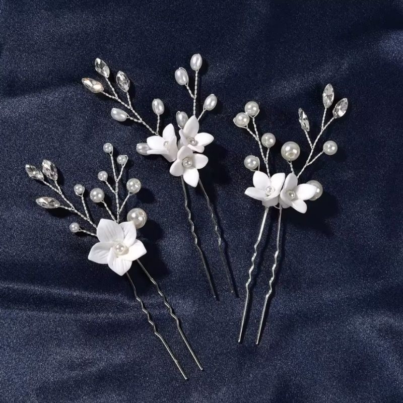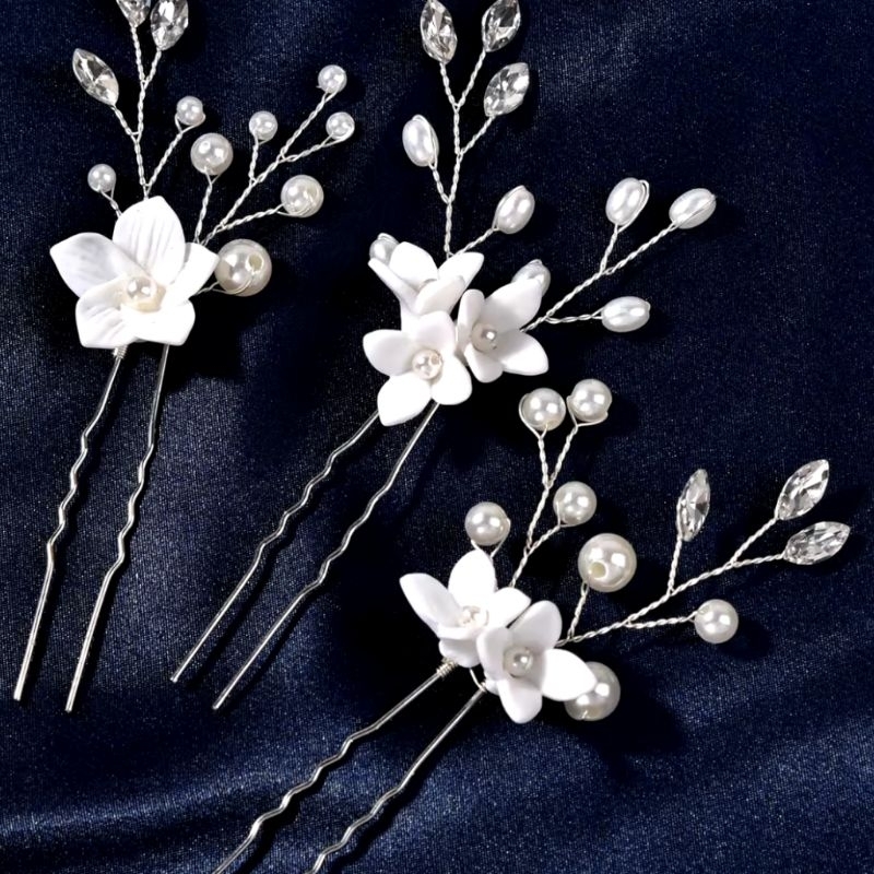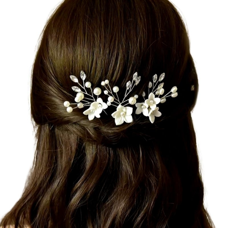 grampo prata flor de porcelana com pérolas e cristais para penteados noiva festa casamento debutante
