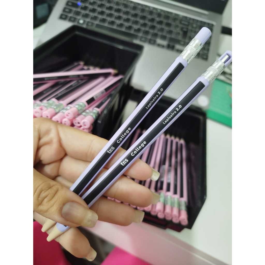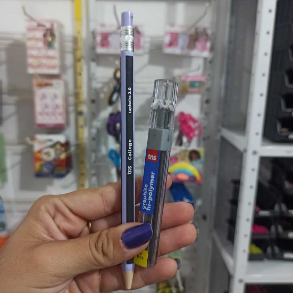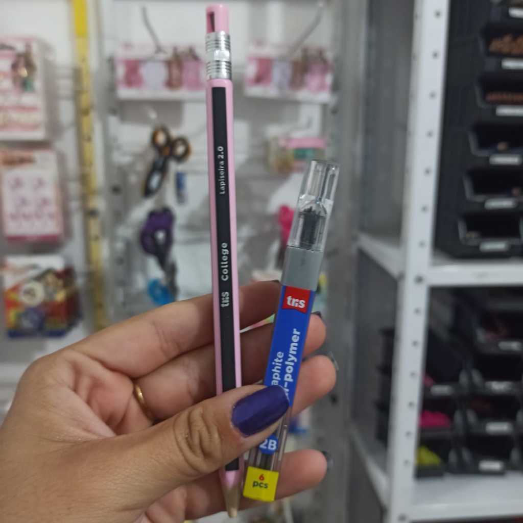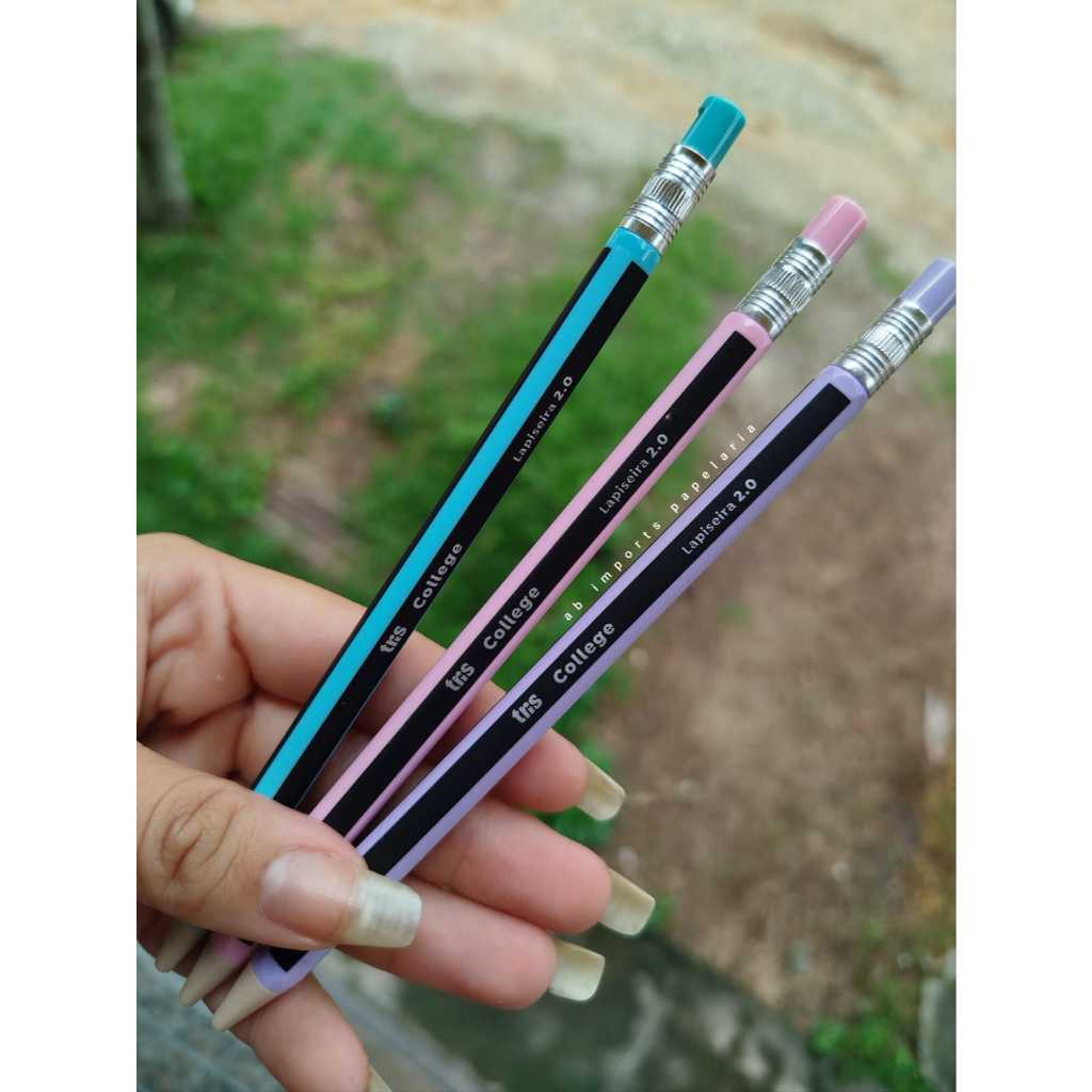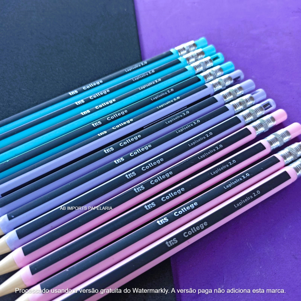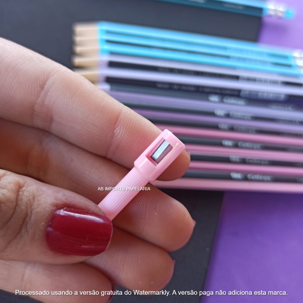 Lapiseira College c/ apontador 2.0 mm |grafite | TRIS - Unidade ou kit c/3 - rosa, verde ou roxo.