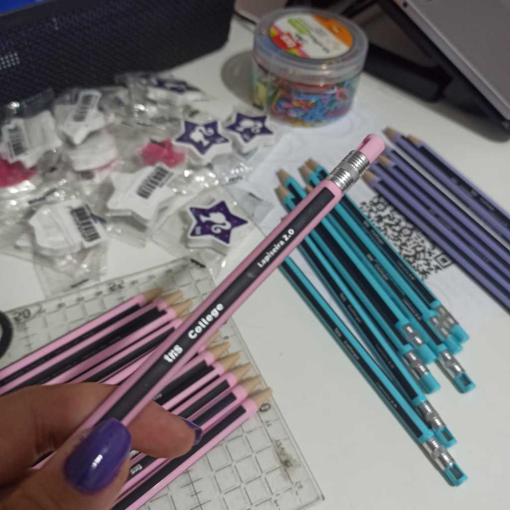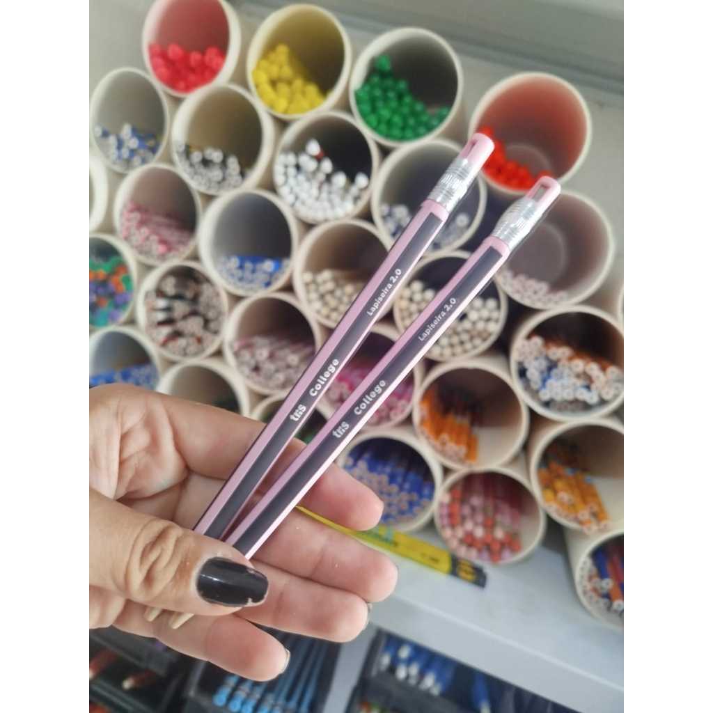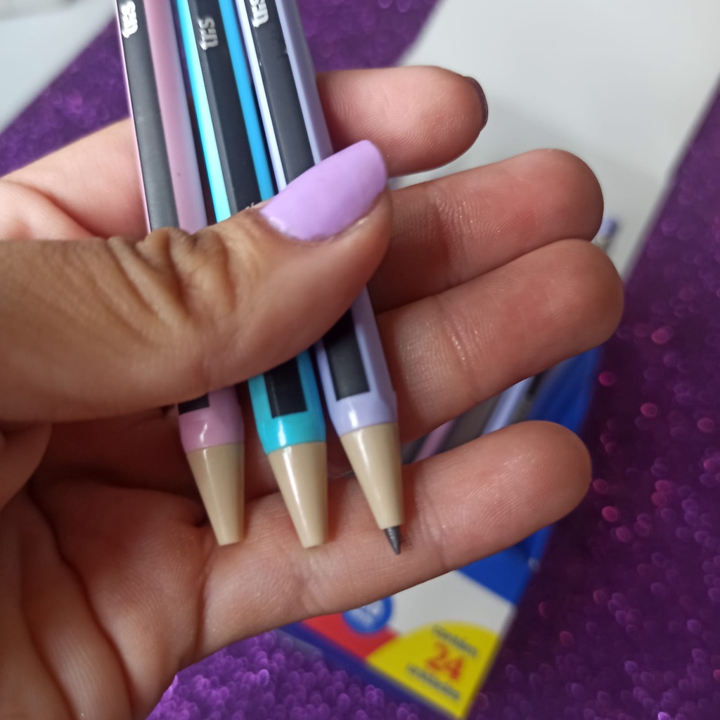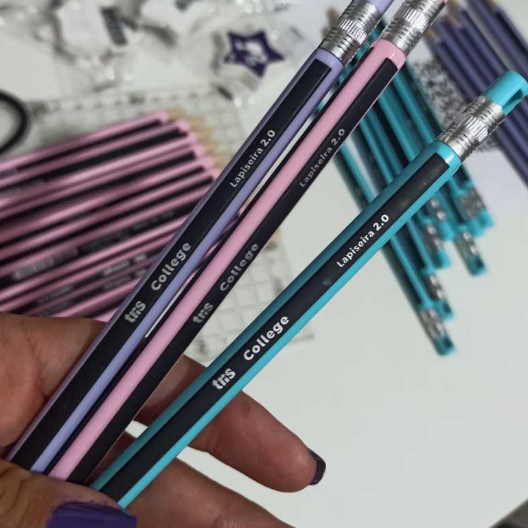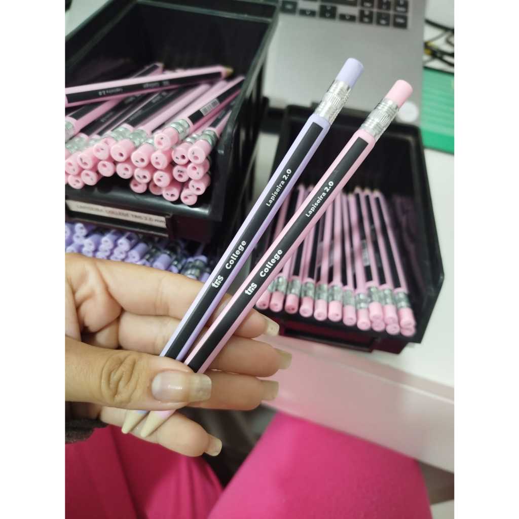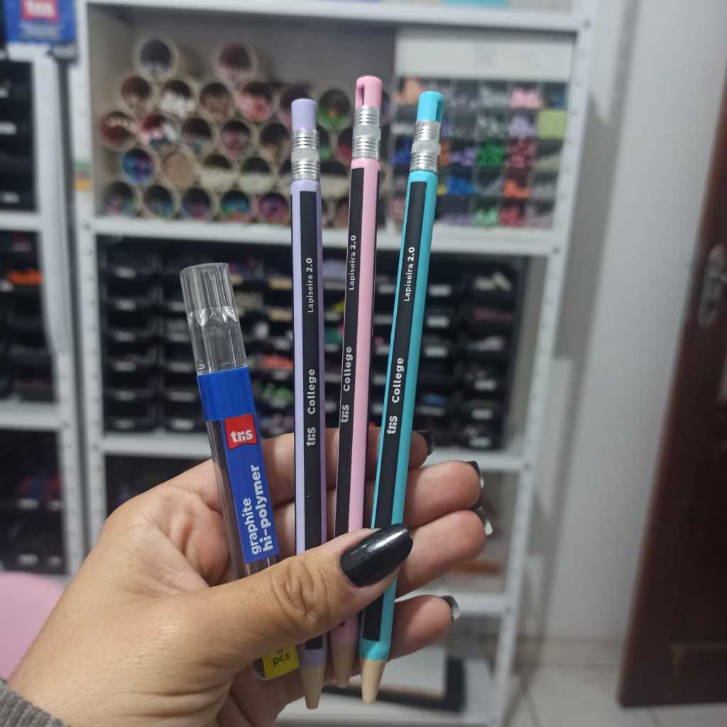 Lapiseira College c/ apontador 2.0 mm |grafite | TRIS - Unidade ou kit c/3 - rosa, verde ou roxo.