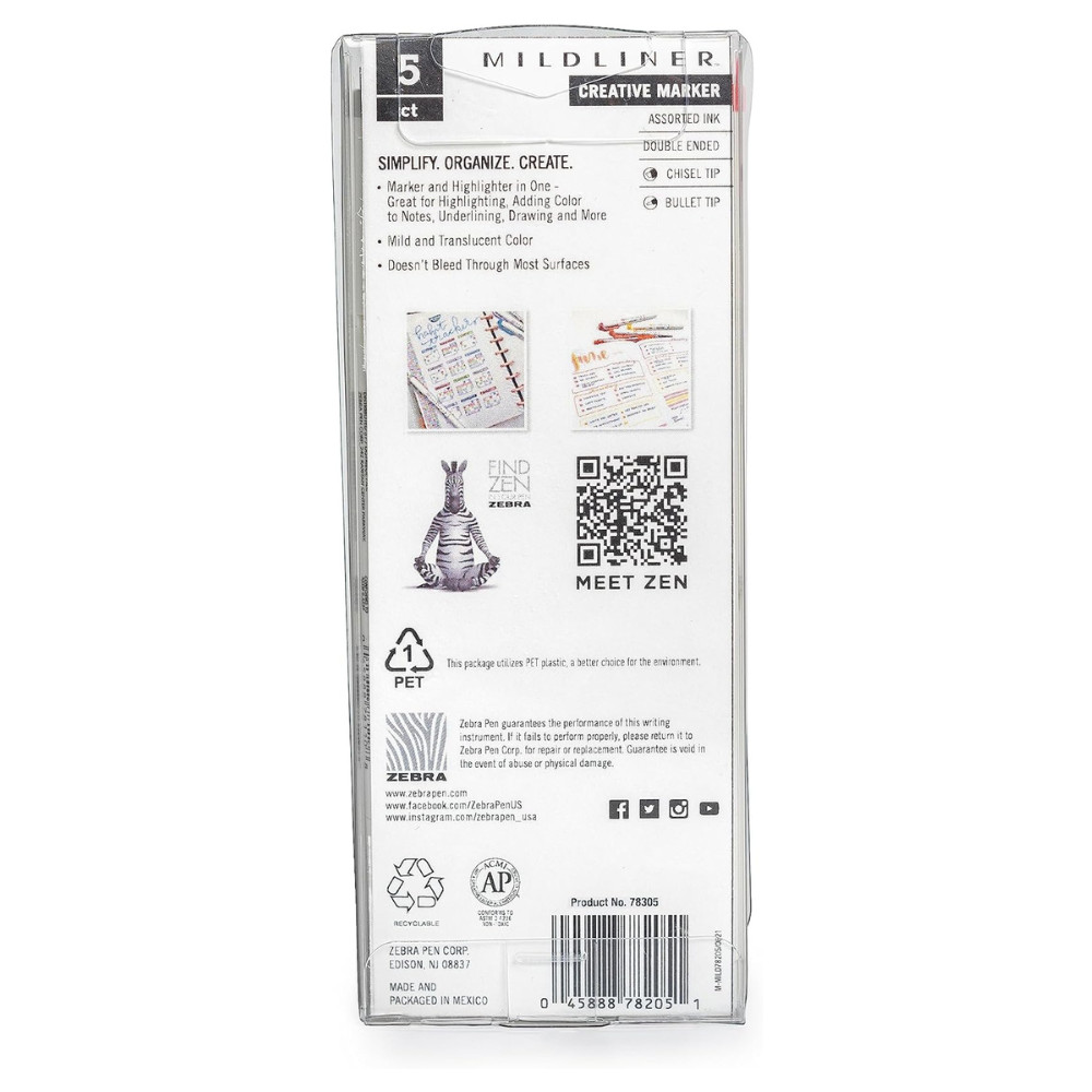 Marca Texto Mildliner Cores Quentes ponta Dupla-Zebra C/5