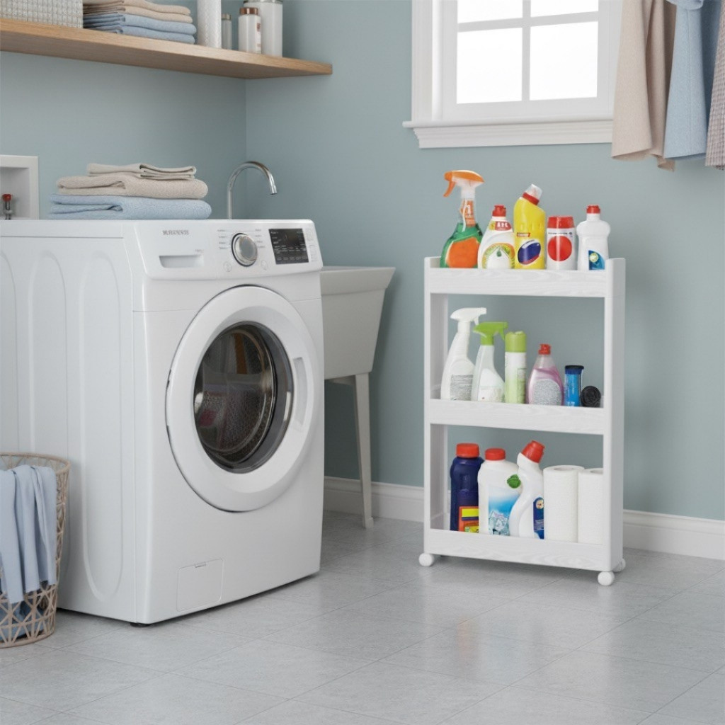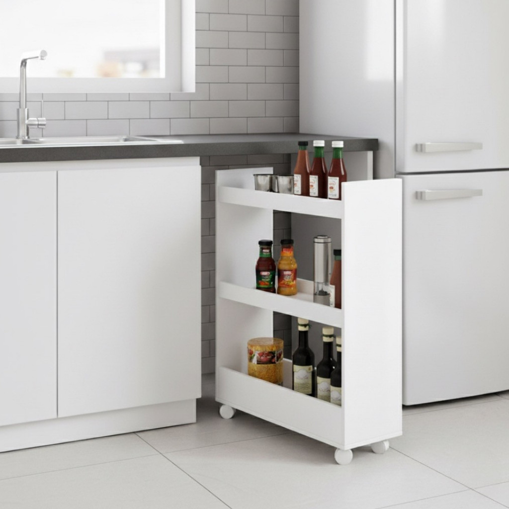 Carrinho Organizador Móvel Lavanderia Com 4 Prateleiras Para Diversos Itens Com Rodinha MDF