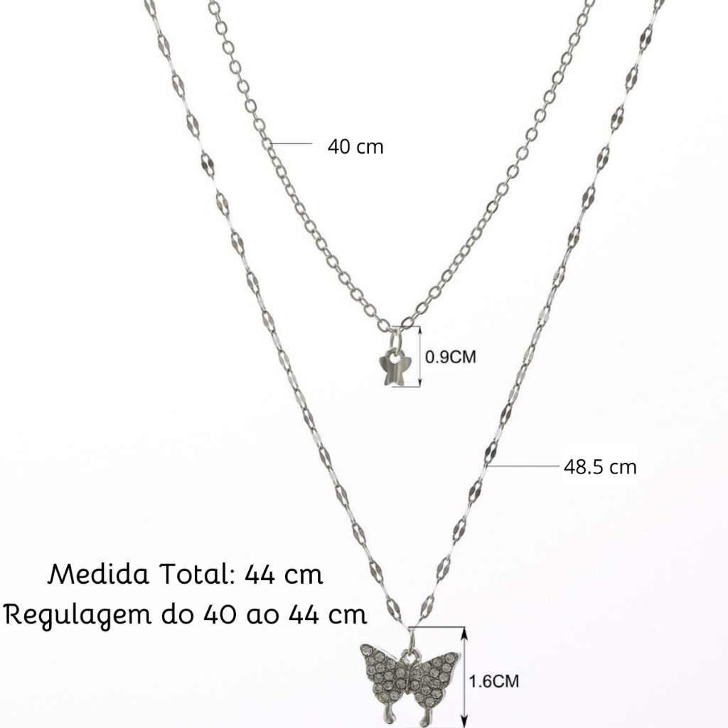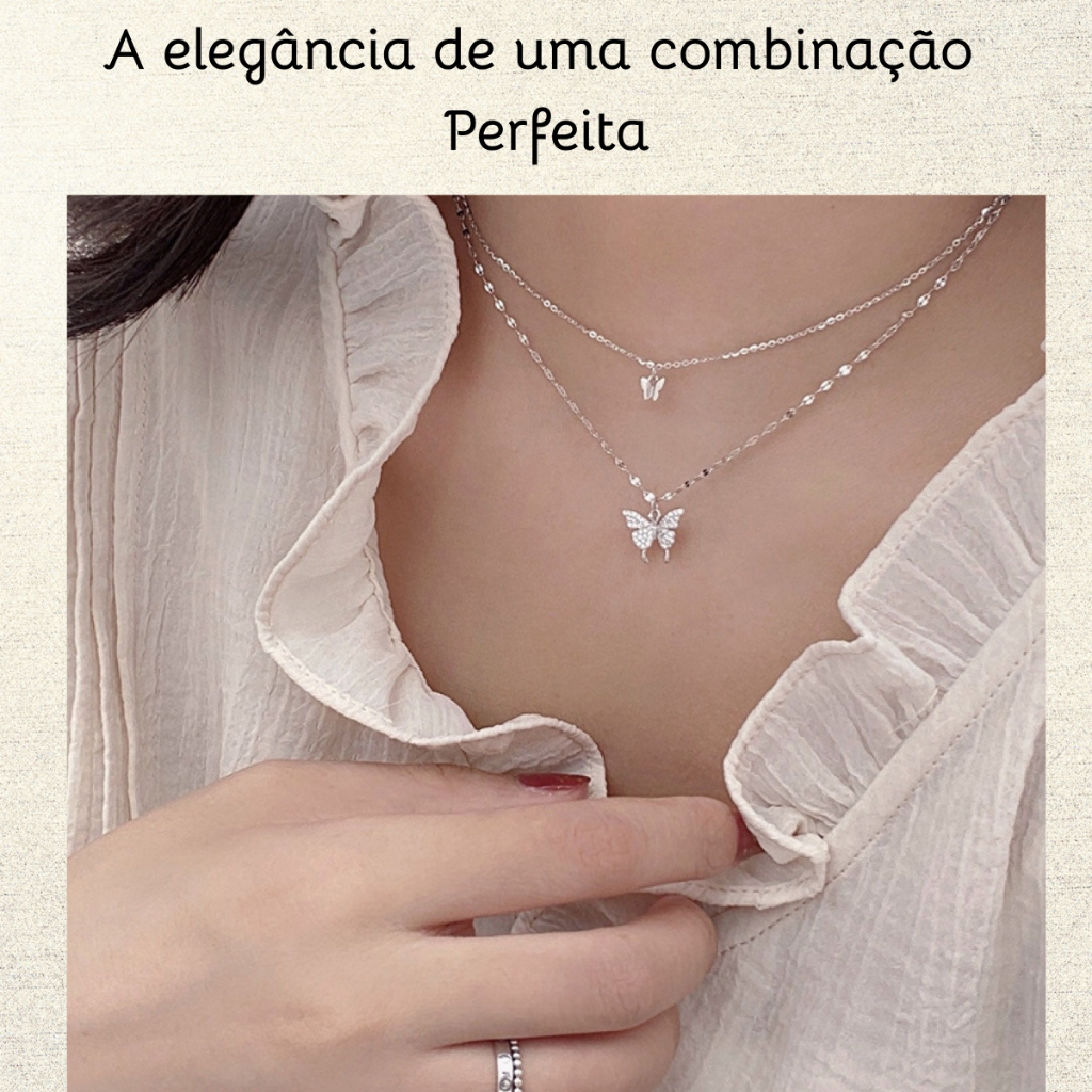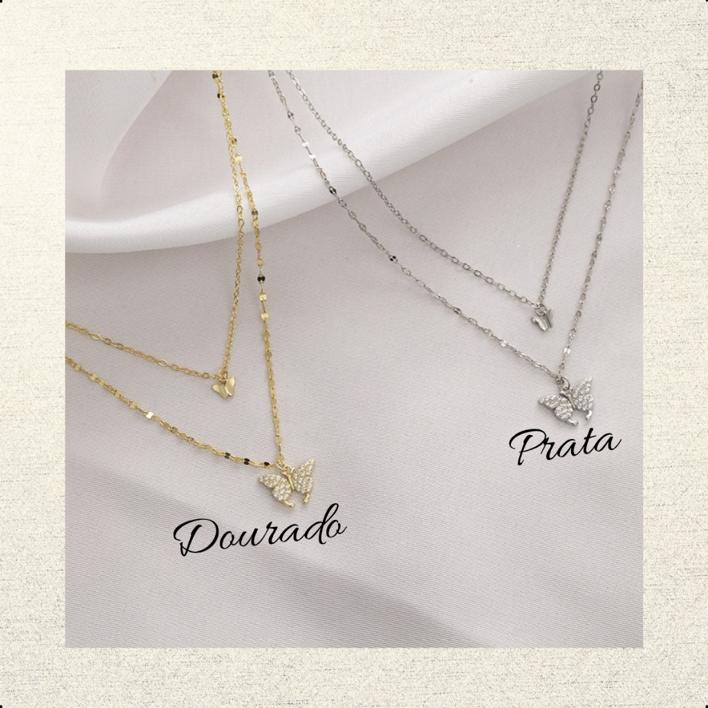 Colar Feminino Borboletas Duplo Minimalista Banhado Ouro Prata Choker Elegante
