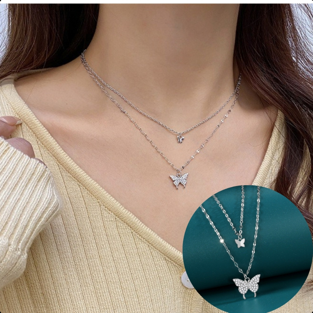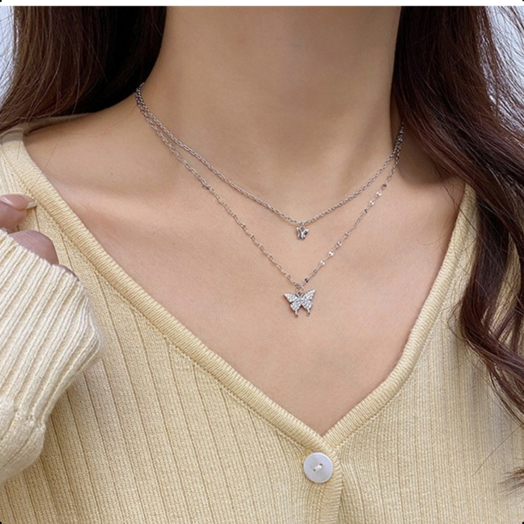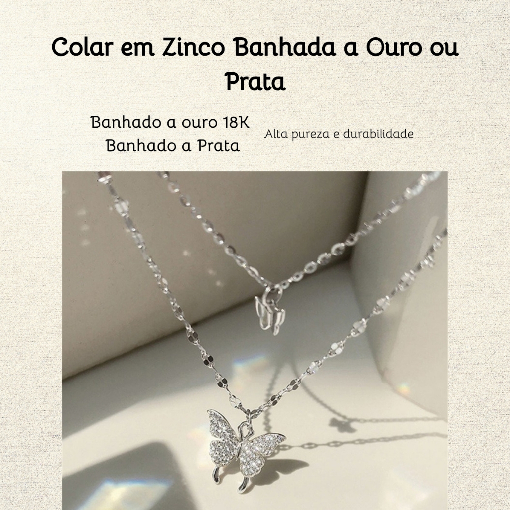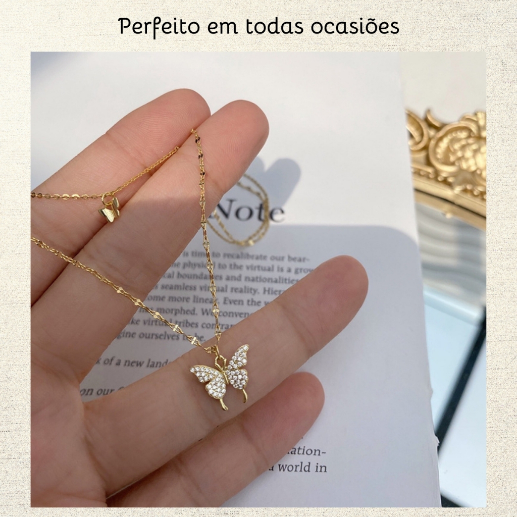 Colar Feminino Borboletas Duplo Minimalista Banhado Ouro Prata Choker Elegante