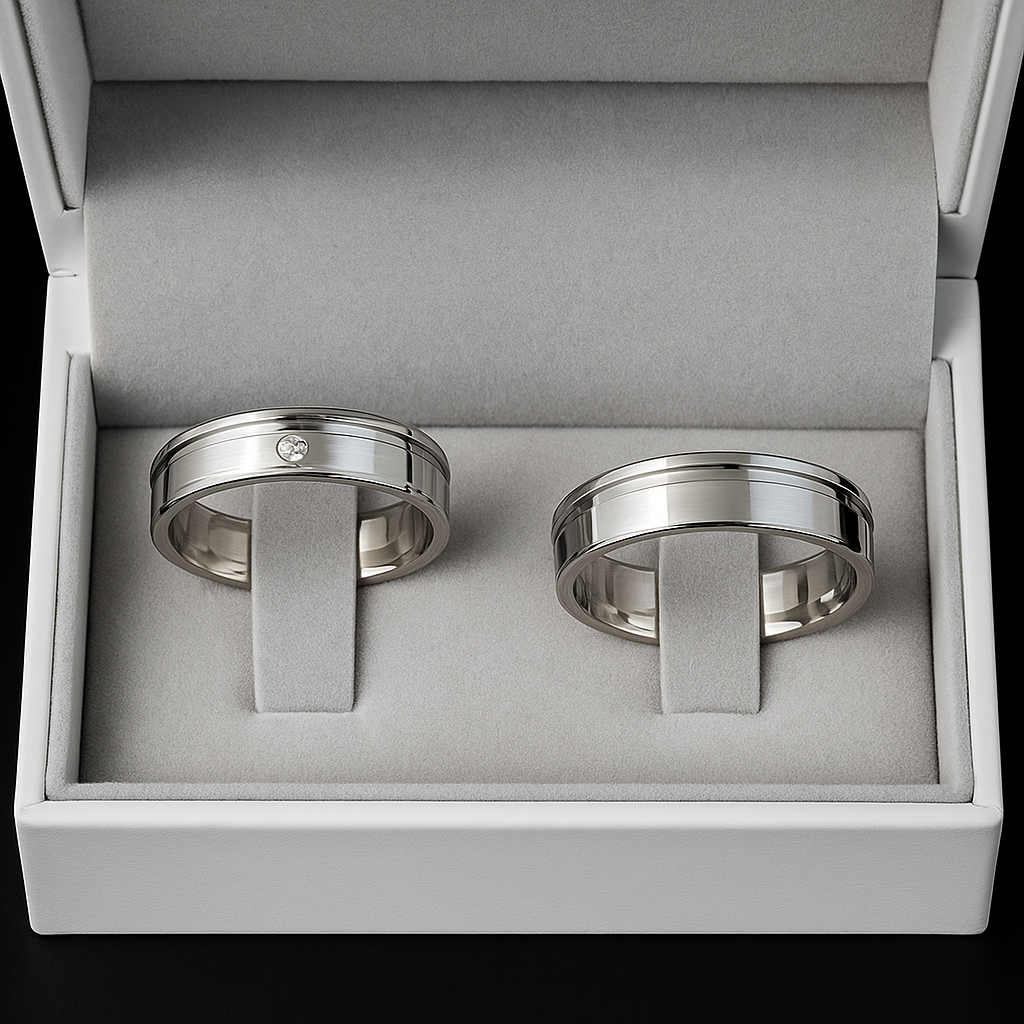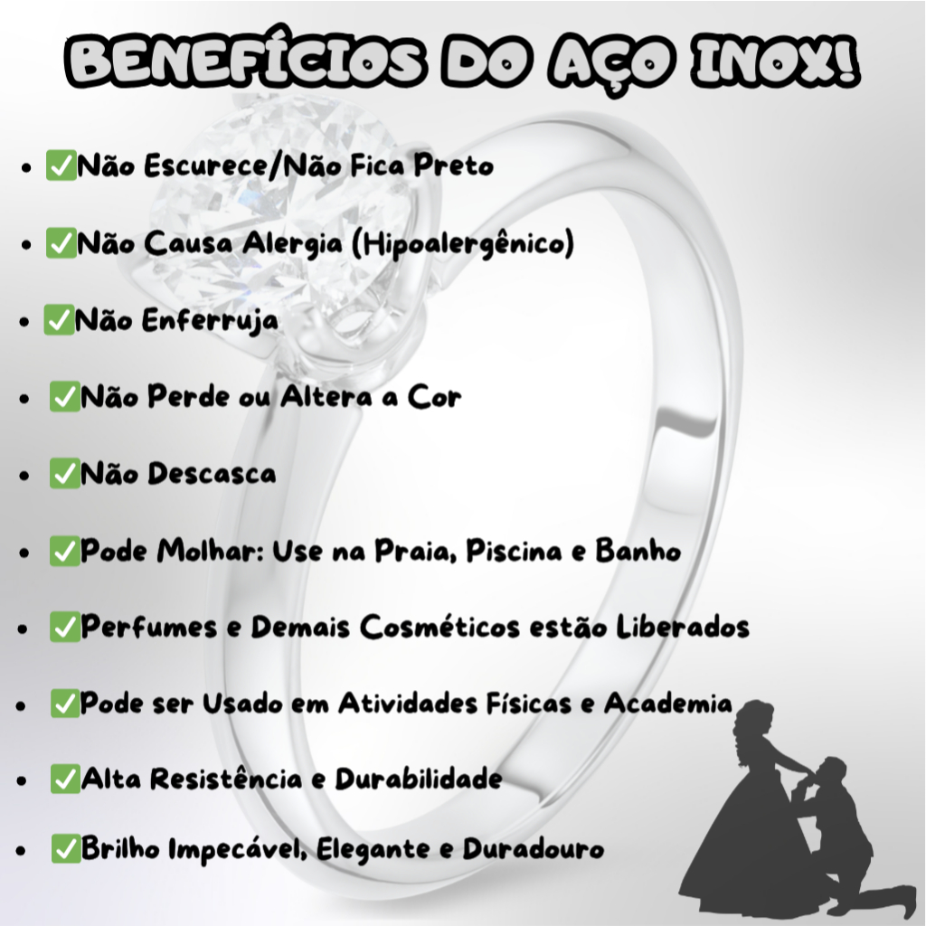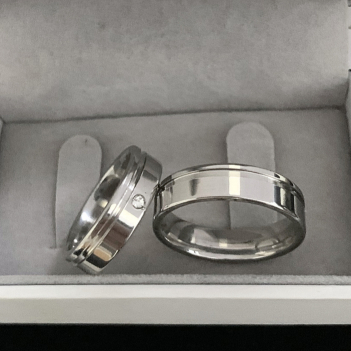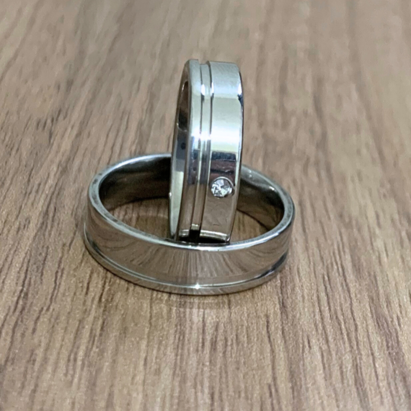 Par de Alianças Namoro Aço Inox Premium 6mm com Super Brilho Feminina com Pedra Central Antialérgicas e Resistentes