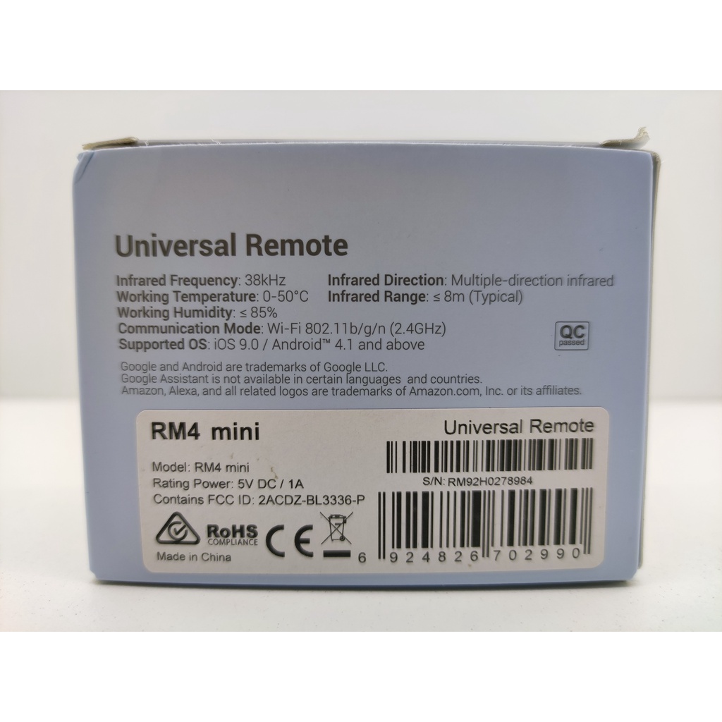 Broadlink RM4 Mini Controle remoto universal IR, hub remoto Wi-Fi Smart Home compatível com Alexa/Google Home