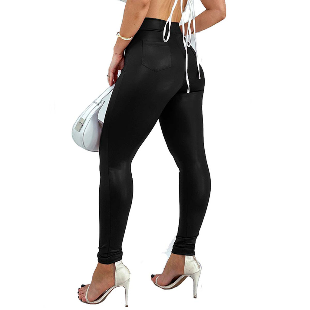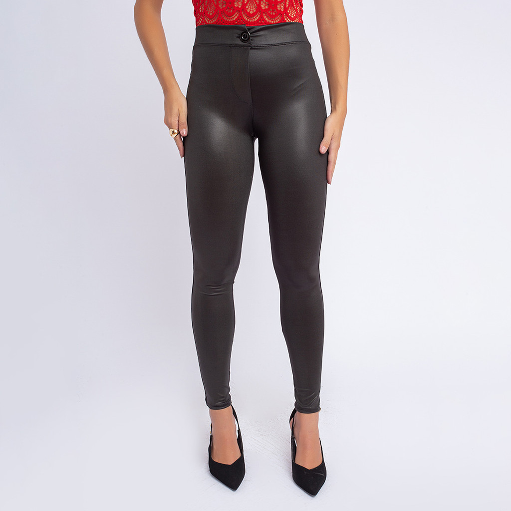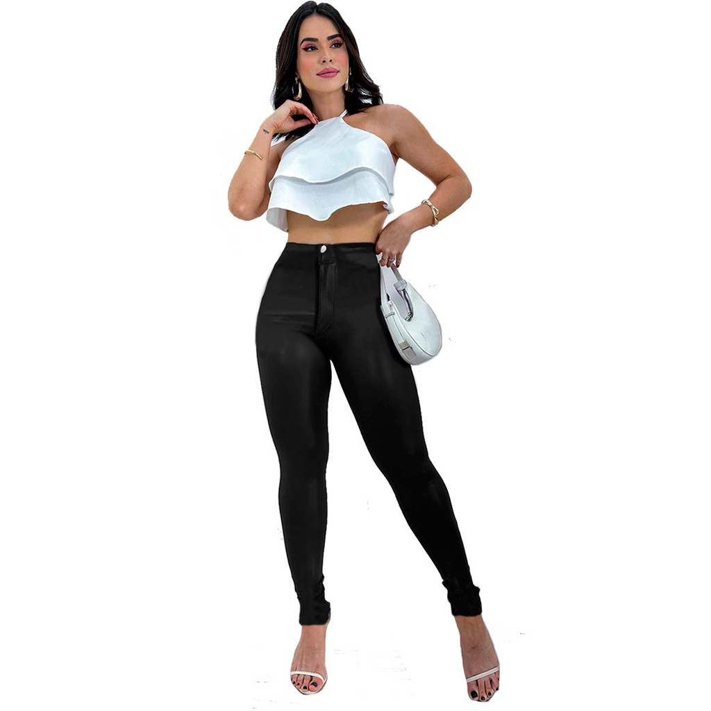 Calça Feminina Cirre Justa Skinny Disco Hot Pants Couro Fake