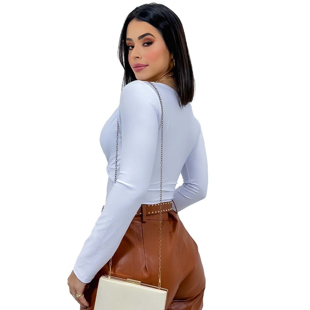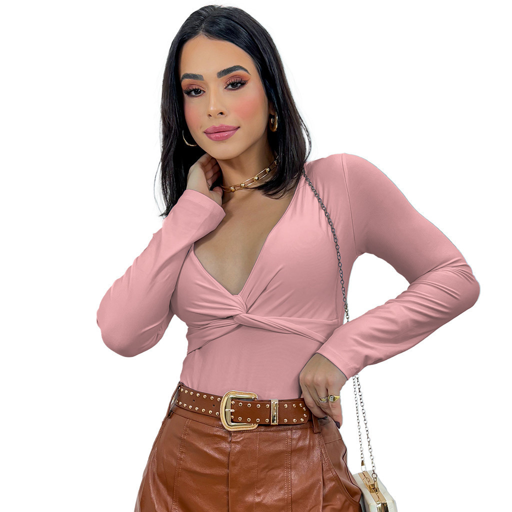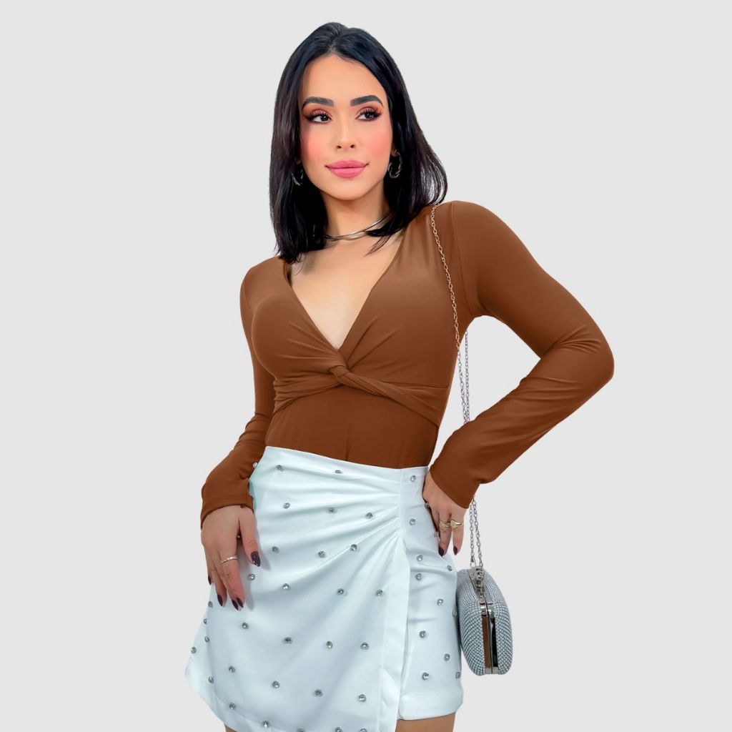 Body Bori Decotado Frente Trançada Manga Longa Inverno Moda Mãe Fashion 2025