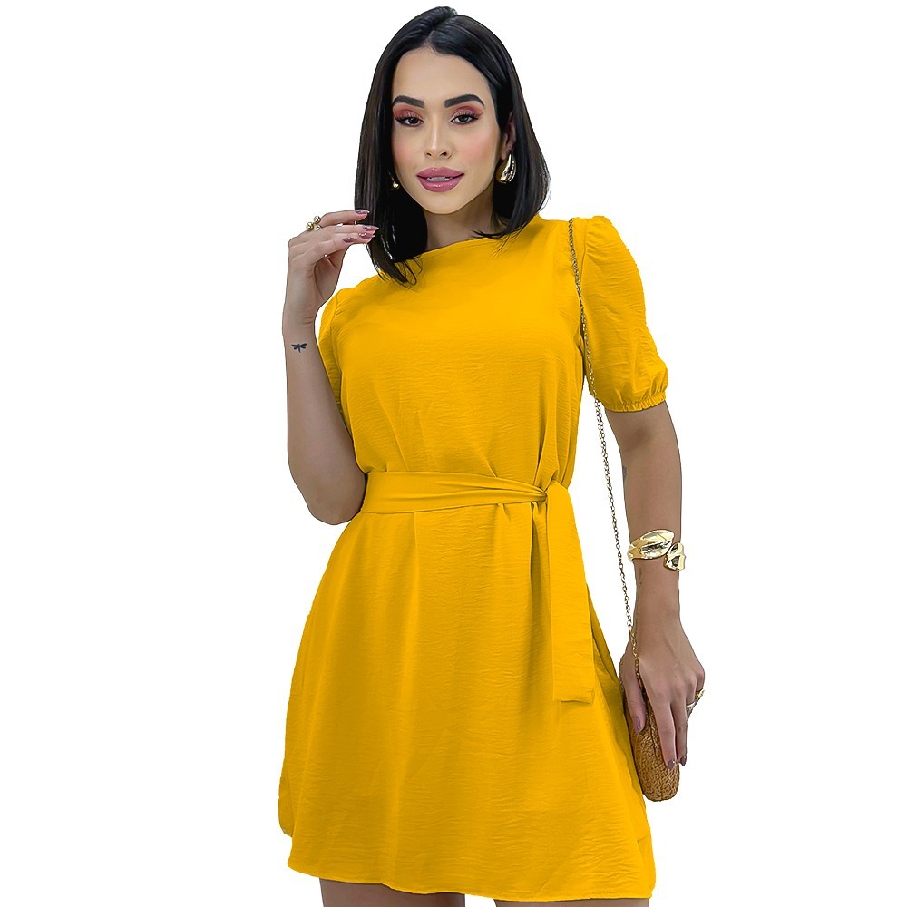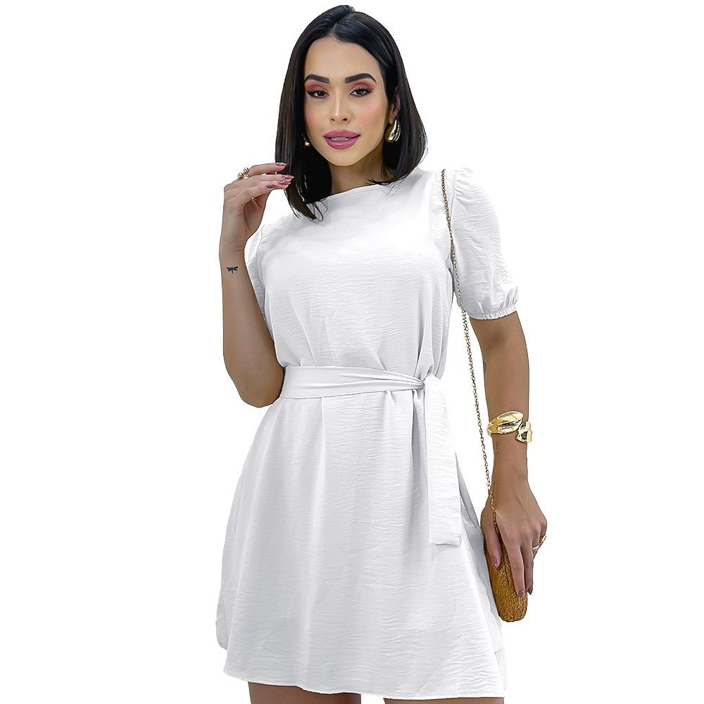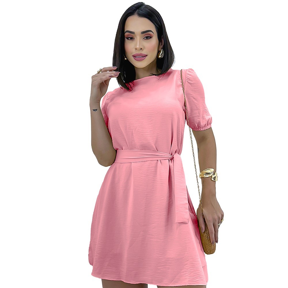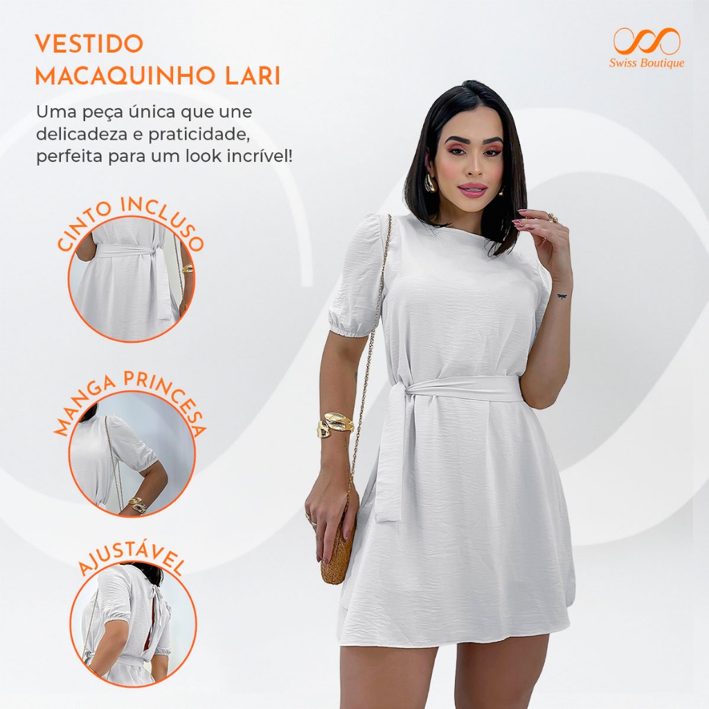 Macacão Feminino Curto Soltinho Manga Bufante Crepe Short Saia