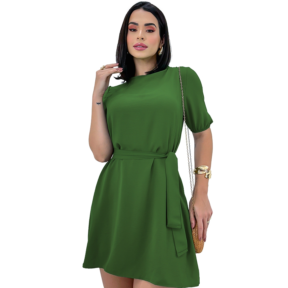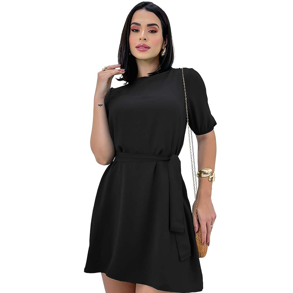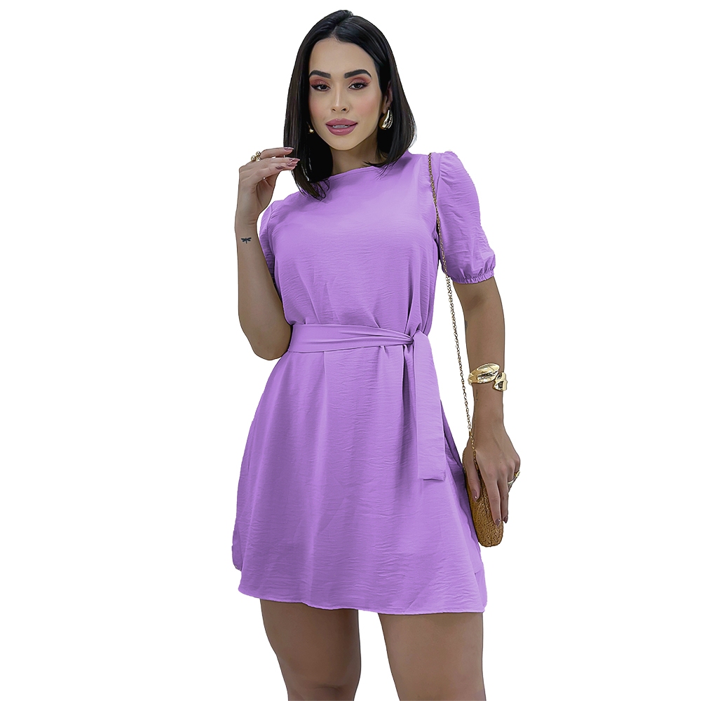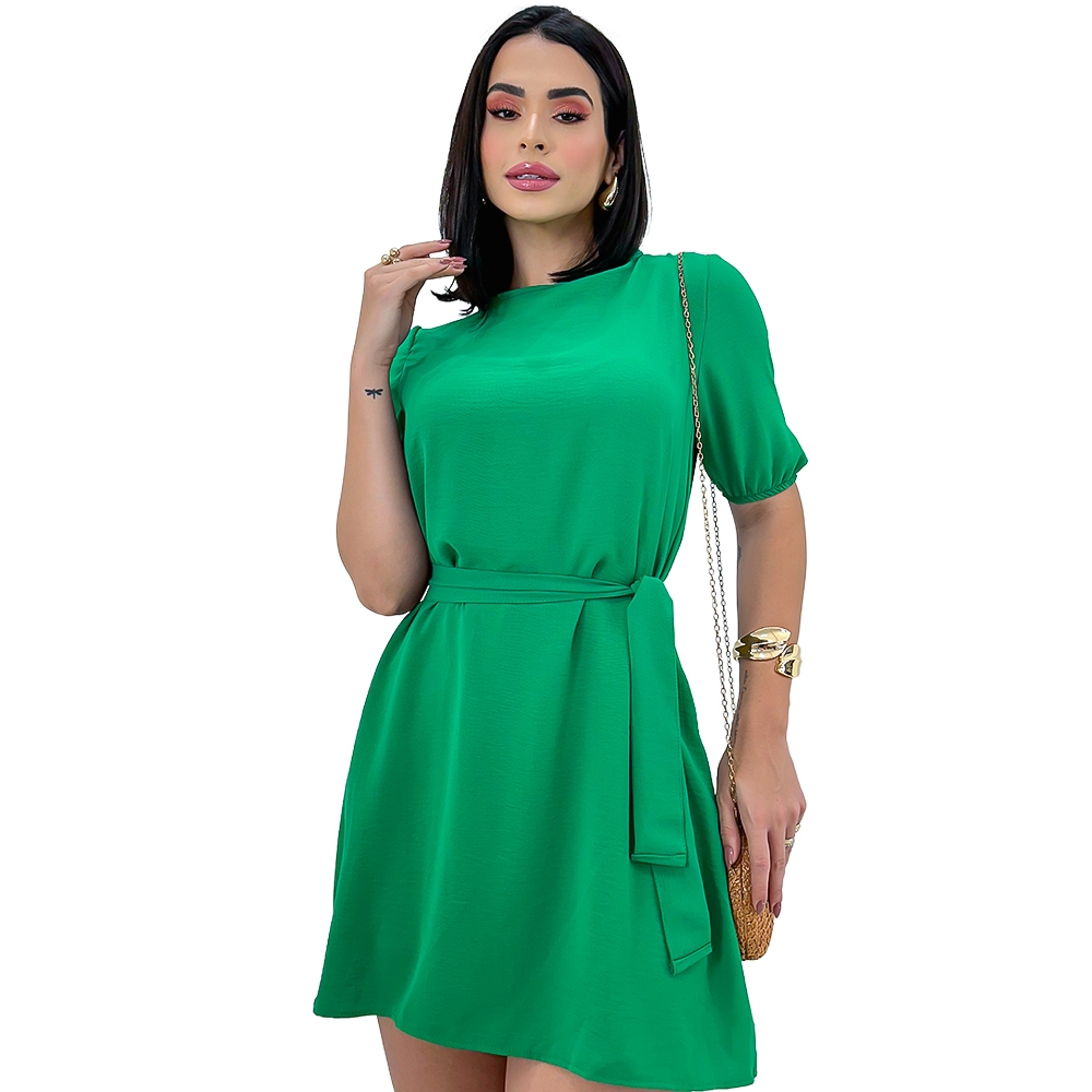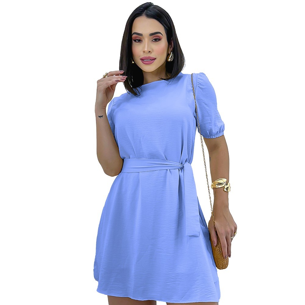 Macacão Feminino Curto Soltinho Manga Bufante Crepe Short Saia