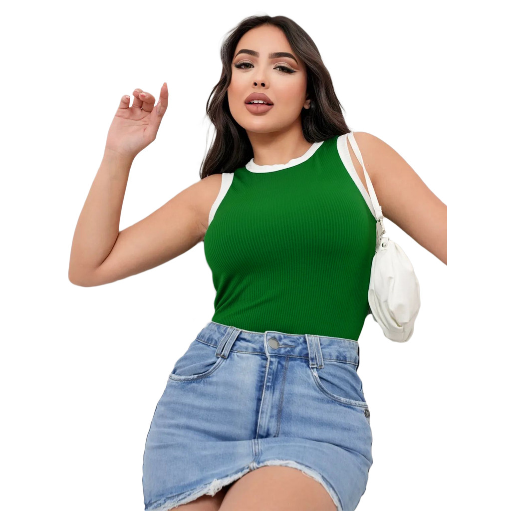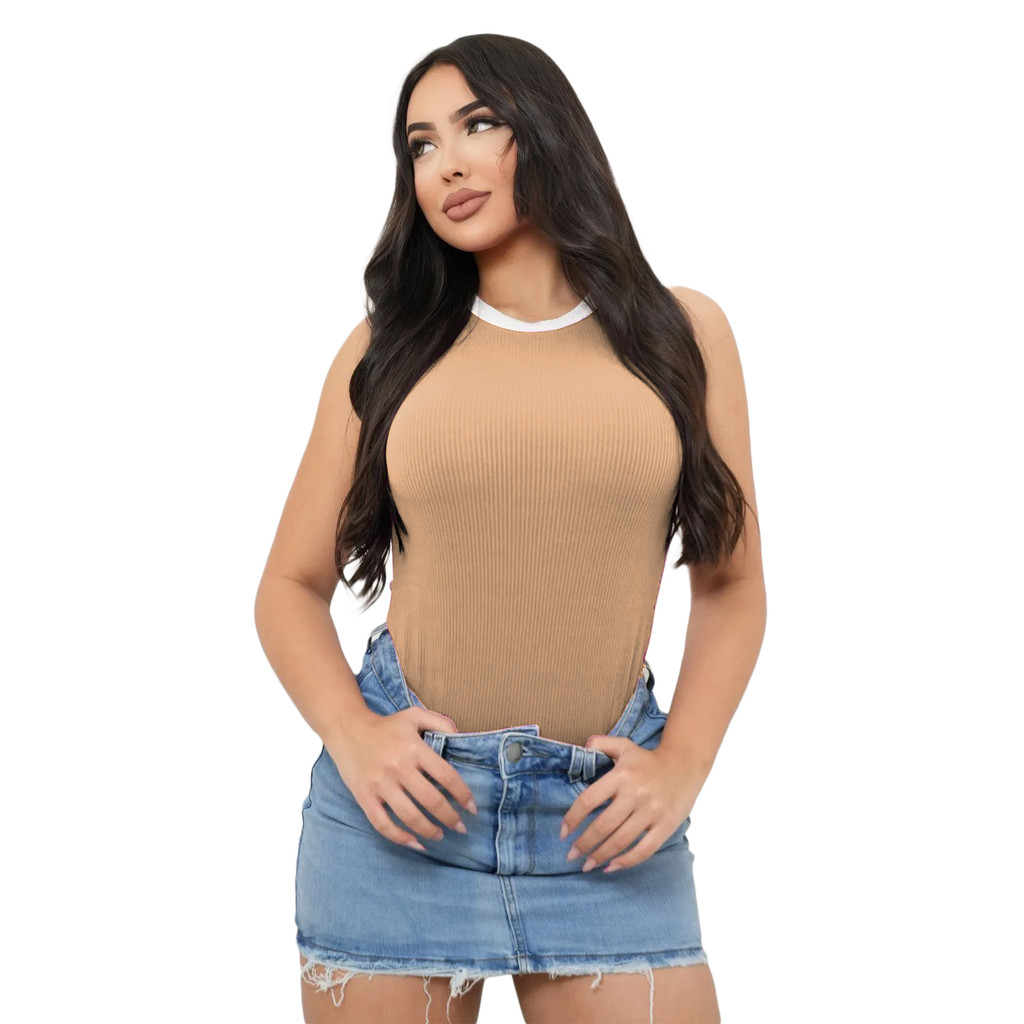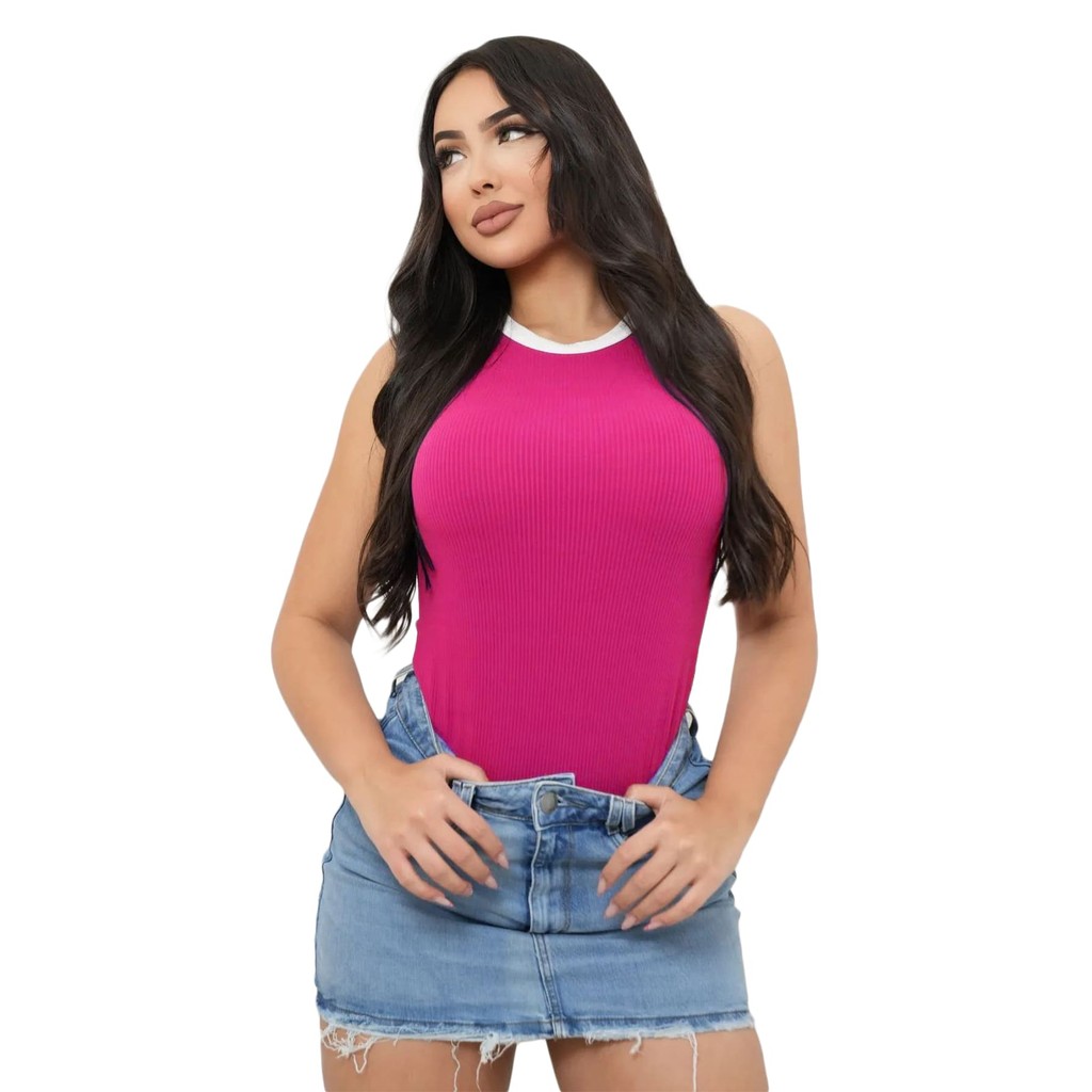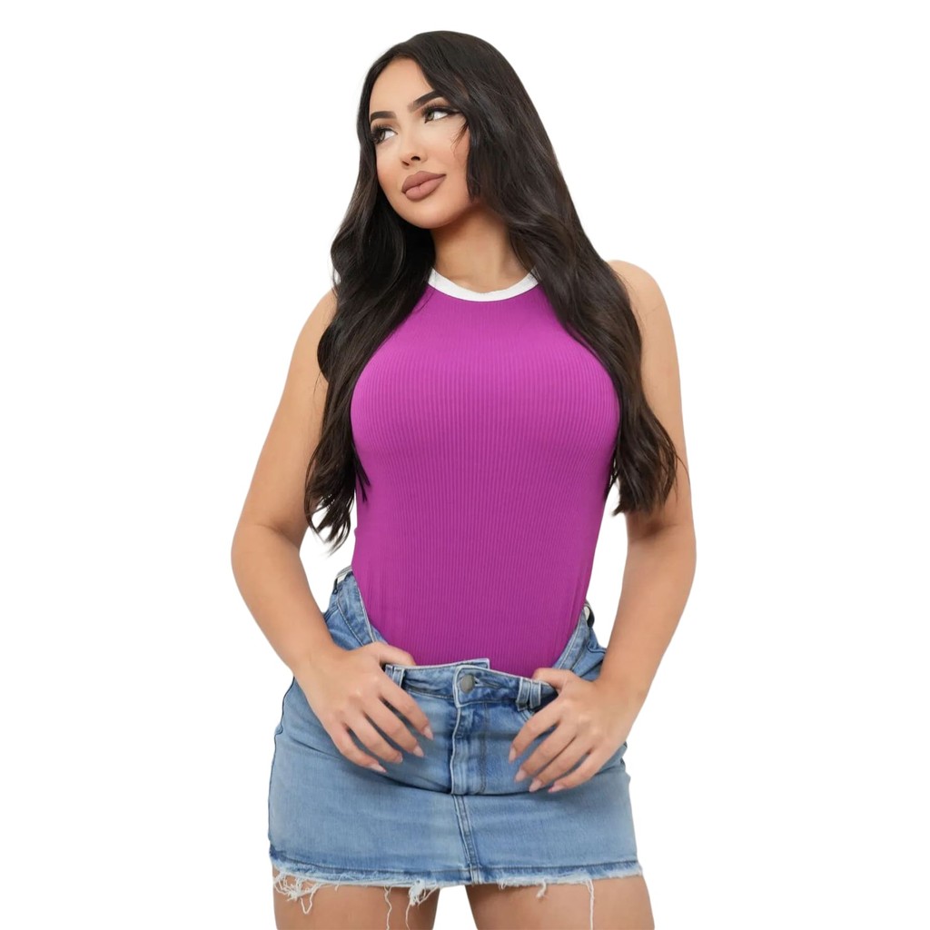Body Feminino Regata Bicolor Canelado Anarruga Premium Top