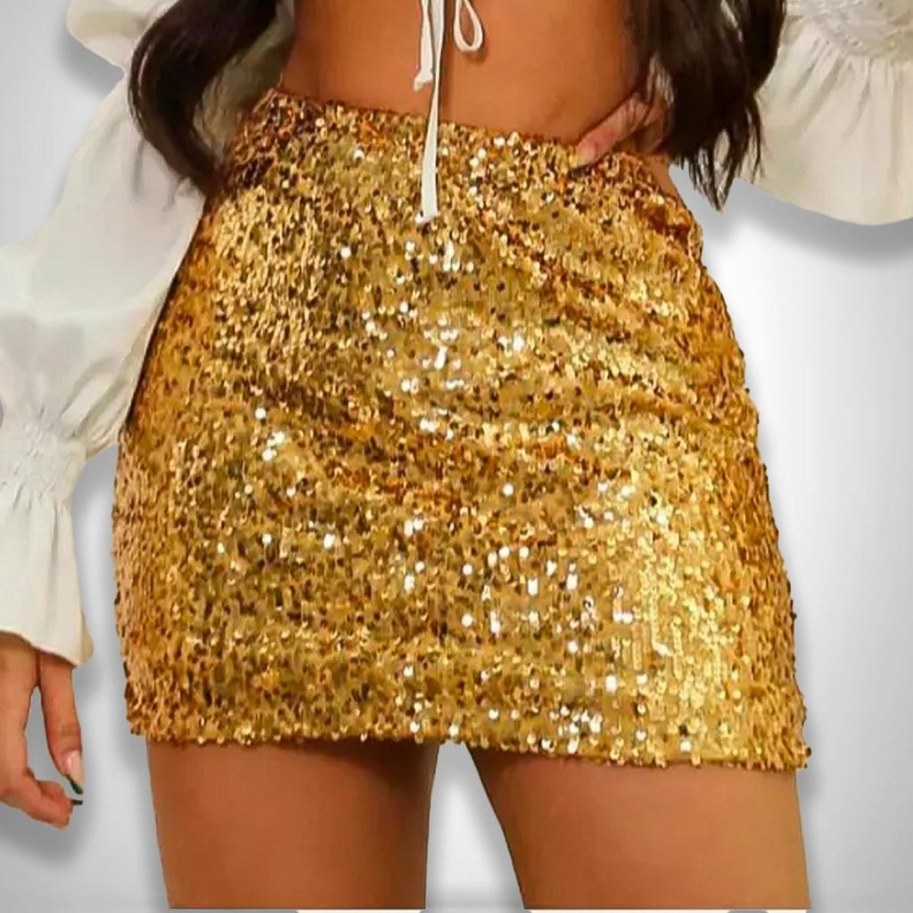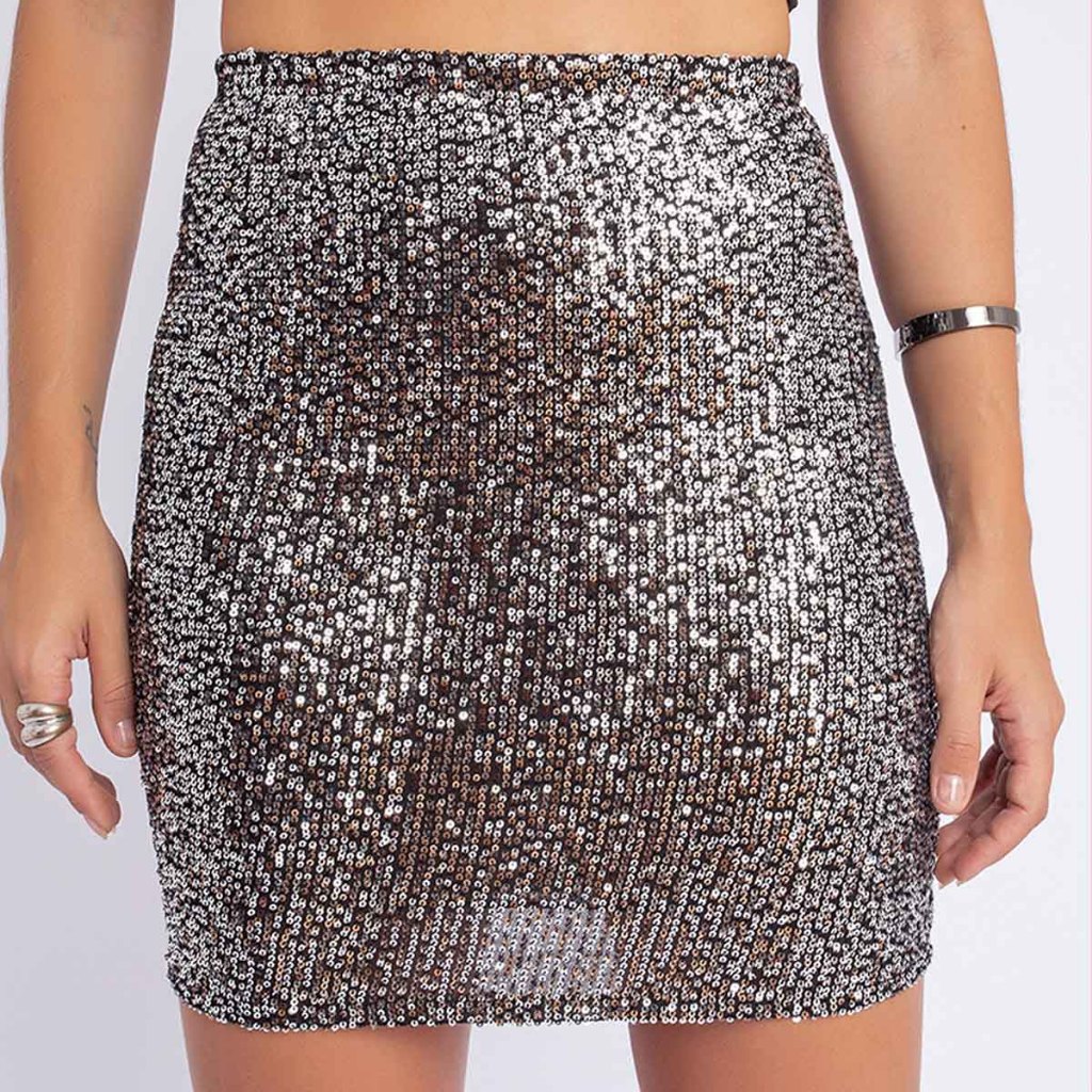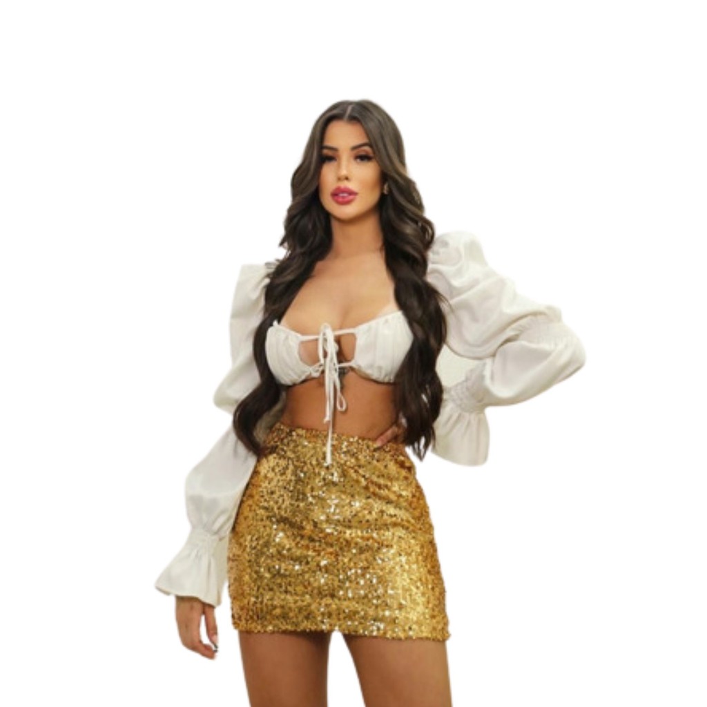 Saia Curta Feminina Brilho Paete Festa Social Luxo Moda Verão Carnaval