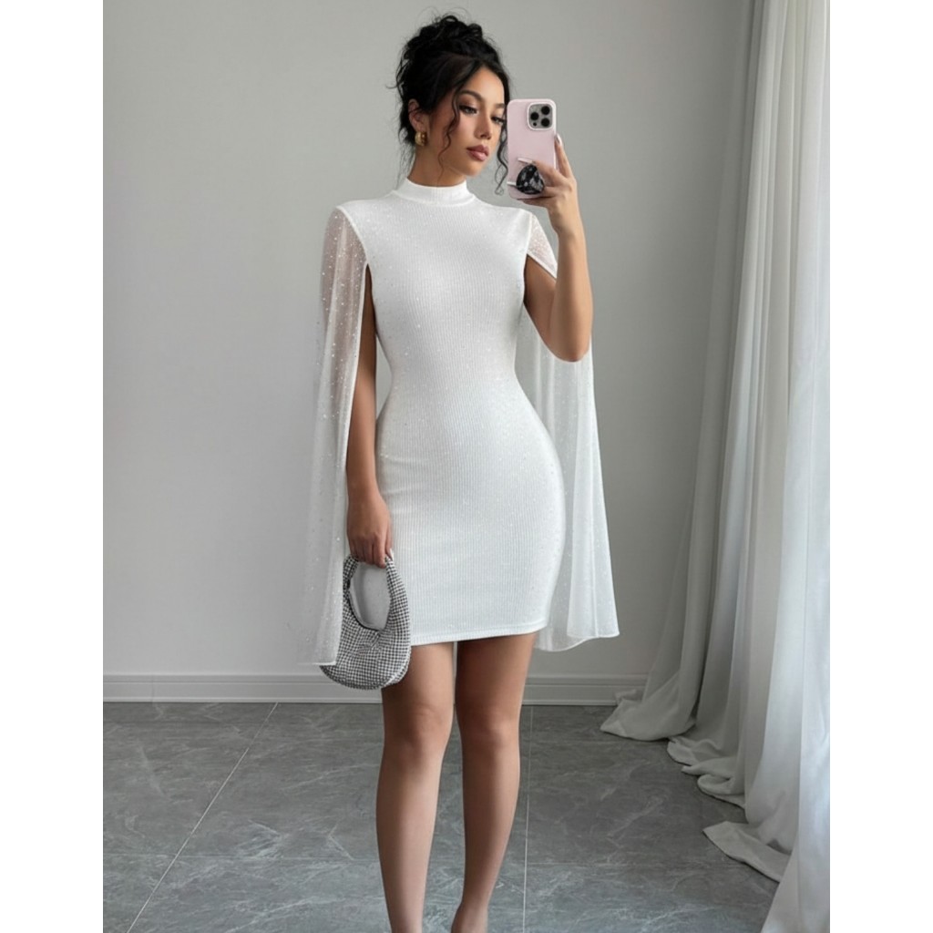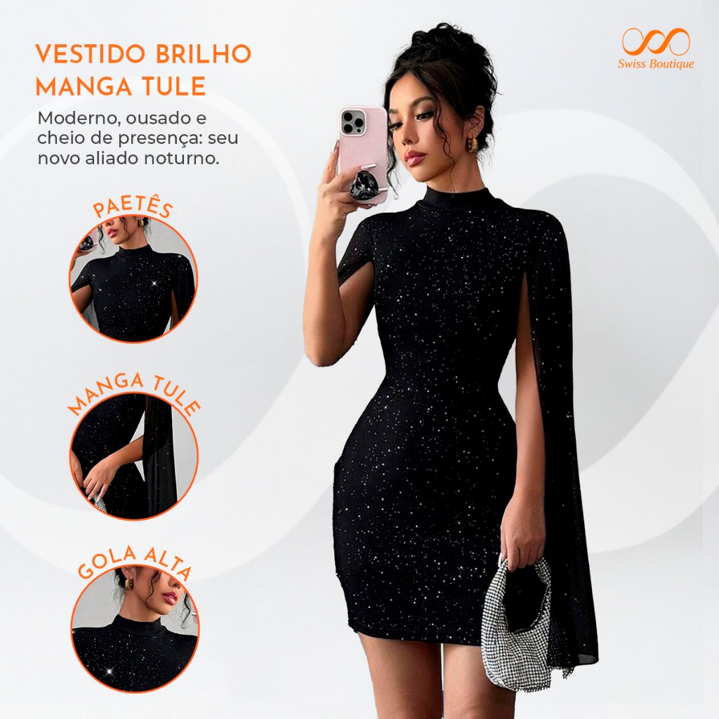 Vestido Feminimo Curto Elegante Festa Moda Tendencia Blogueira Paetes Tule