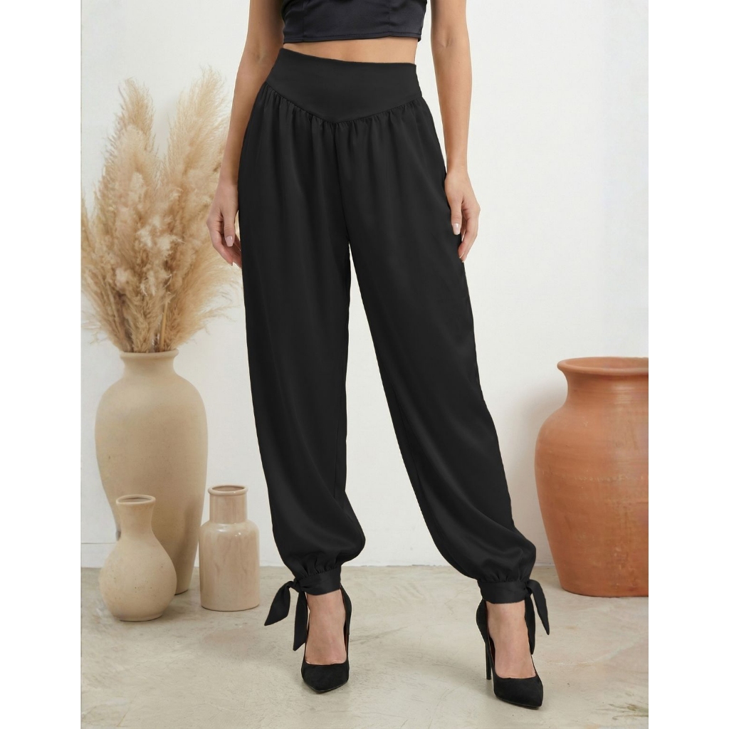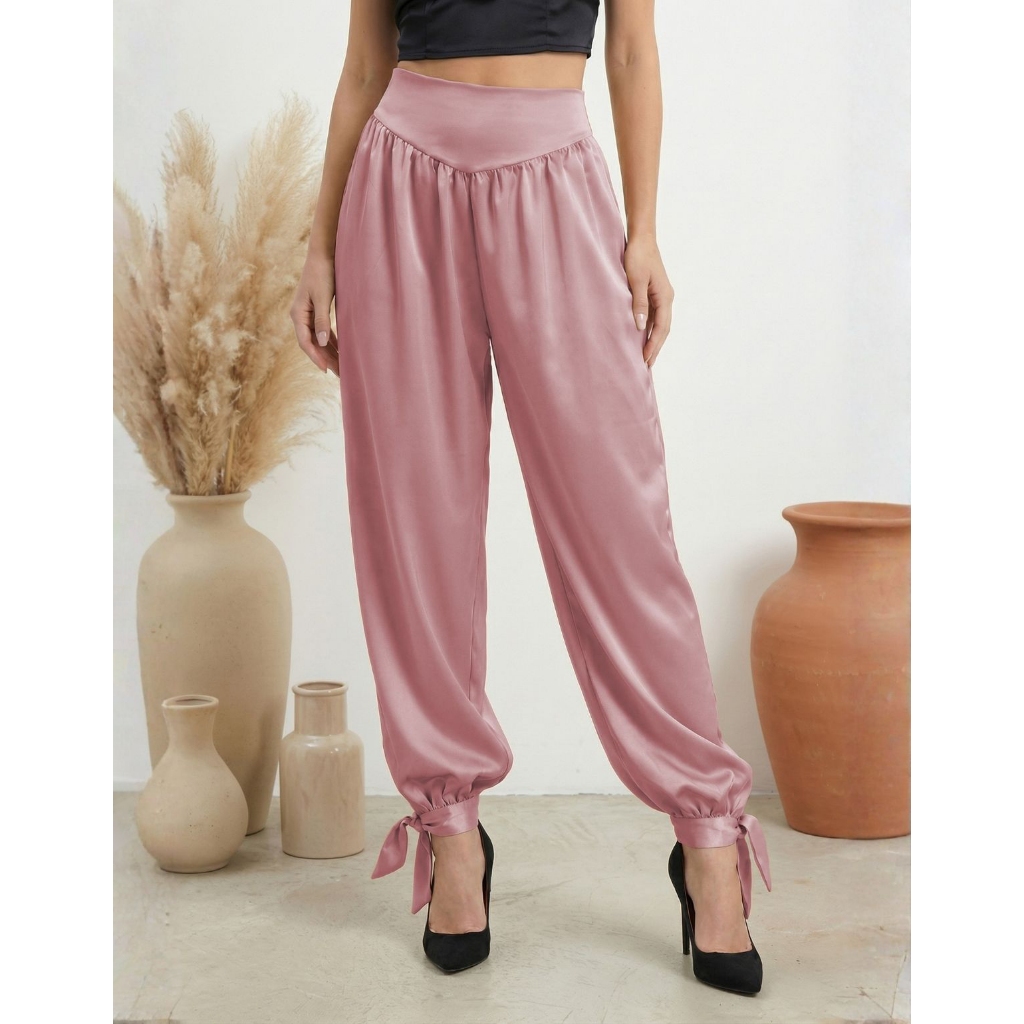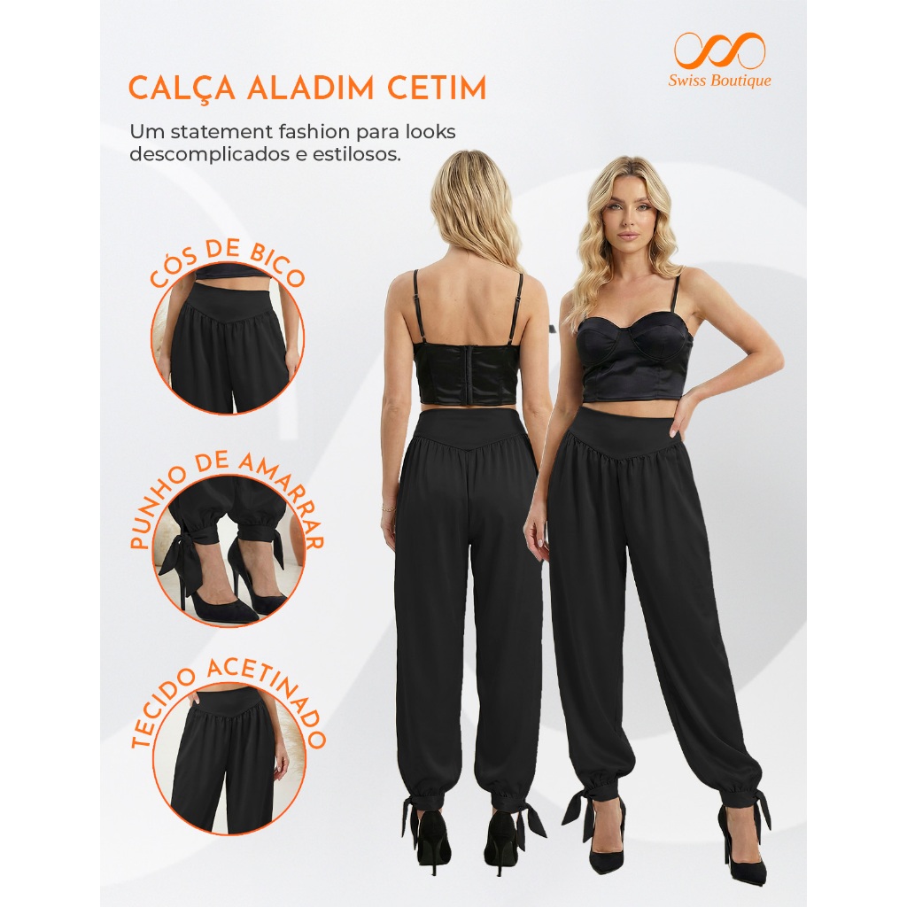 Calça Feminina Aladim Cetim Chiffon Jogger Cintura Alta Tendência Verão
